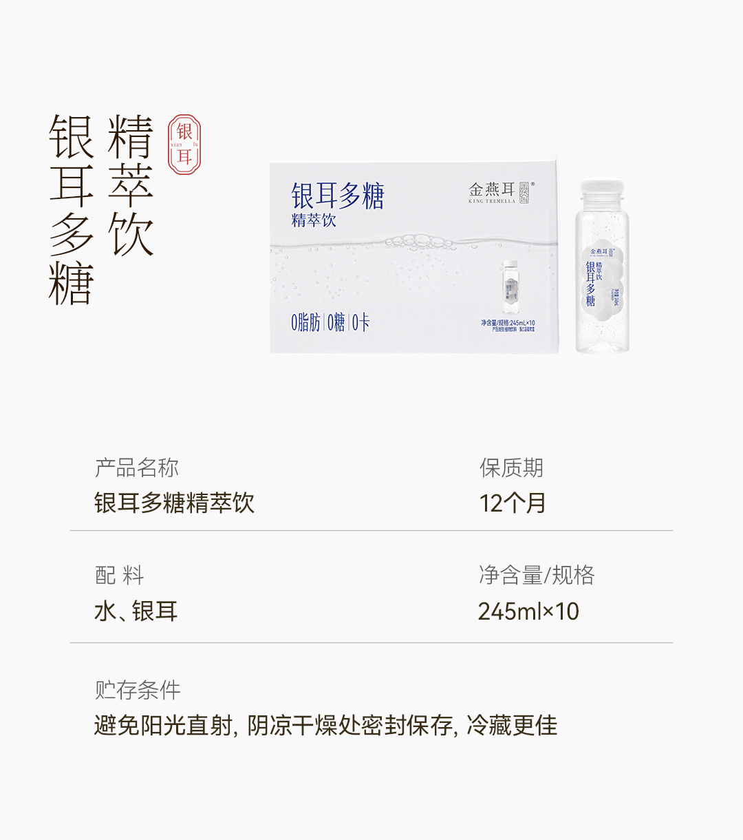 金燕耳【银耳多糖精萃饮】 高山鲜银耳萃取精华 改善亚健康/清肠道/ 0糖0卡0脂肪 245ML*10瓶