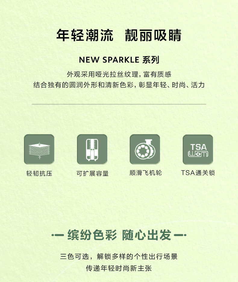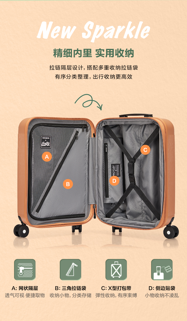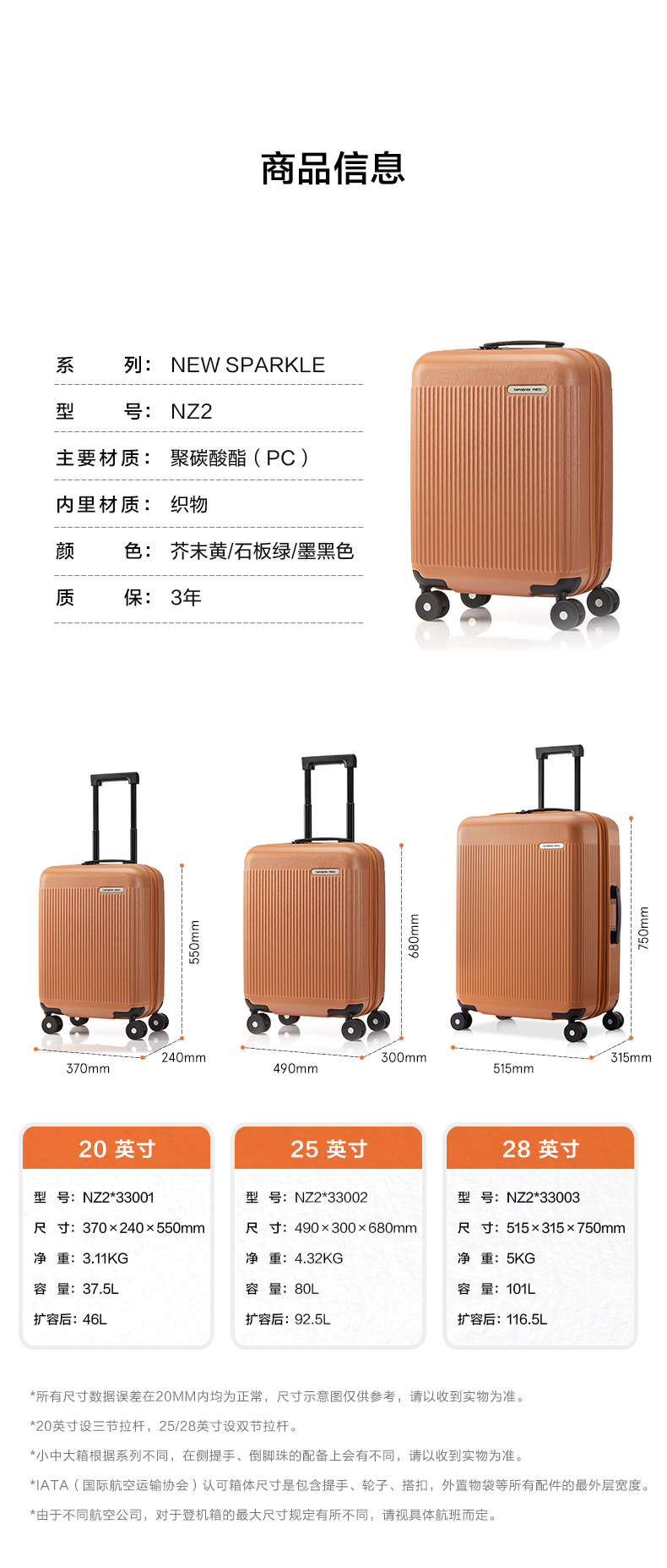 新秀丽NEW SPARKLE系列哑光拉丝纹理PC材质拉杆箱NZ2