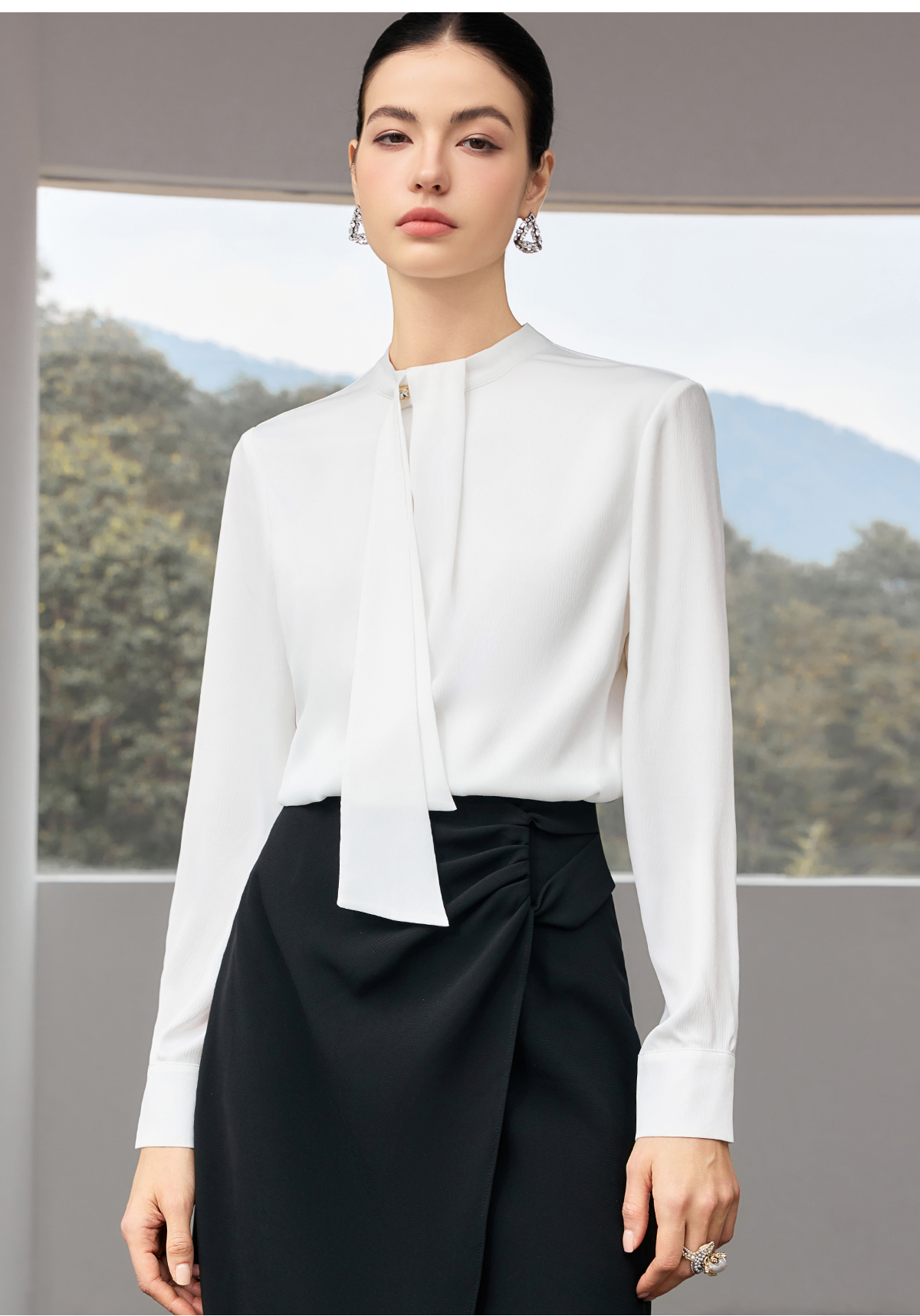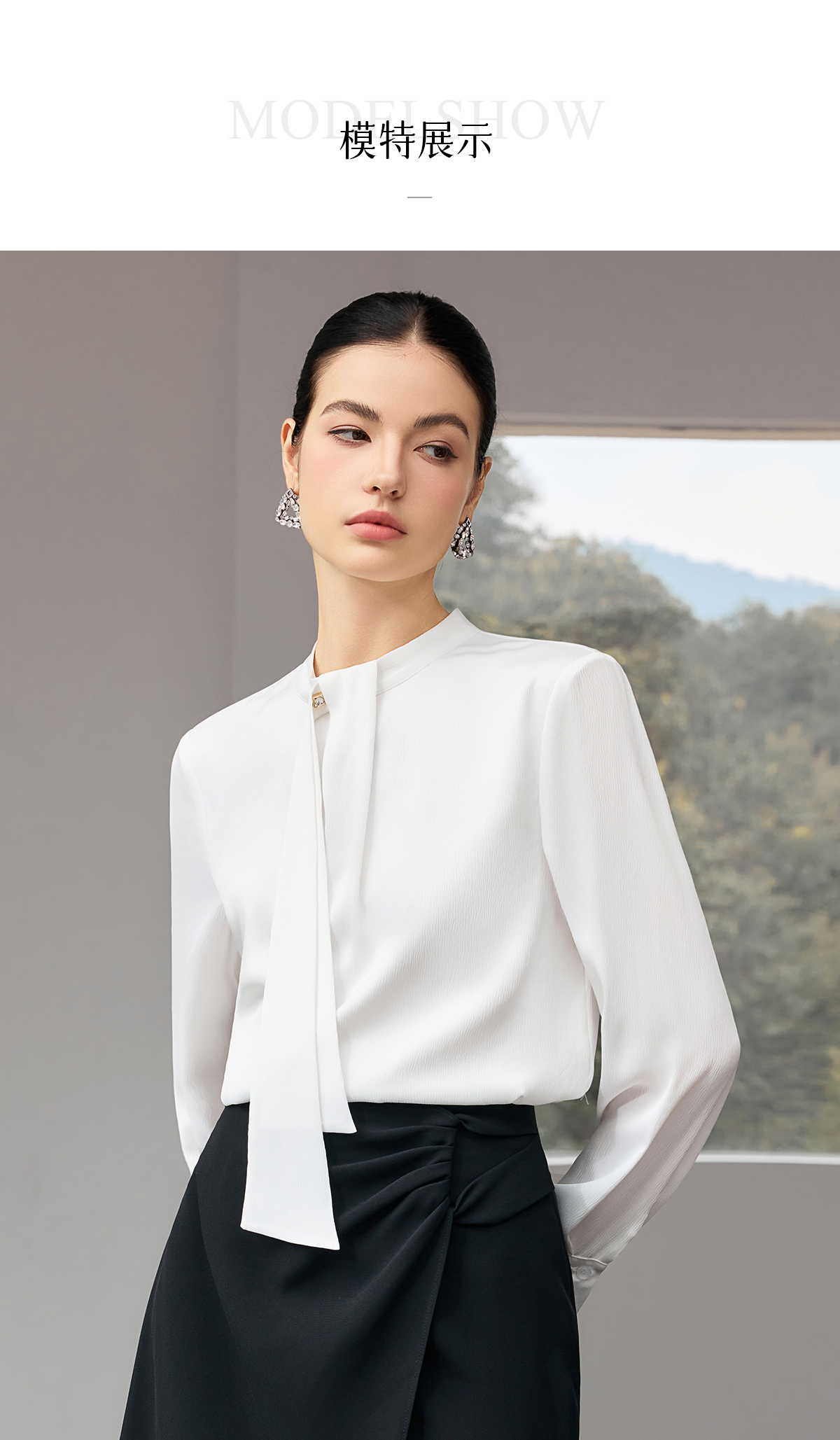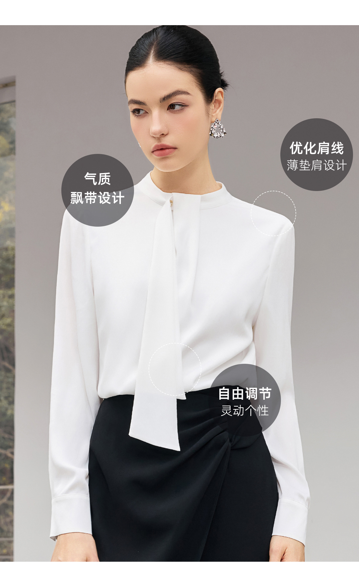 IWY/【白茶清欢】白色飘带衬衫春秋轻奢减龄气质百搭上衣25B922