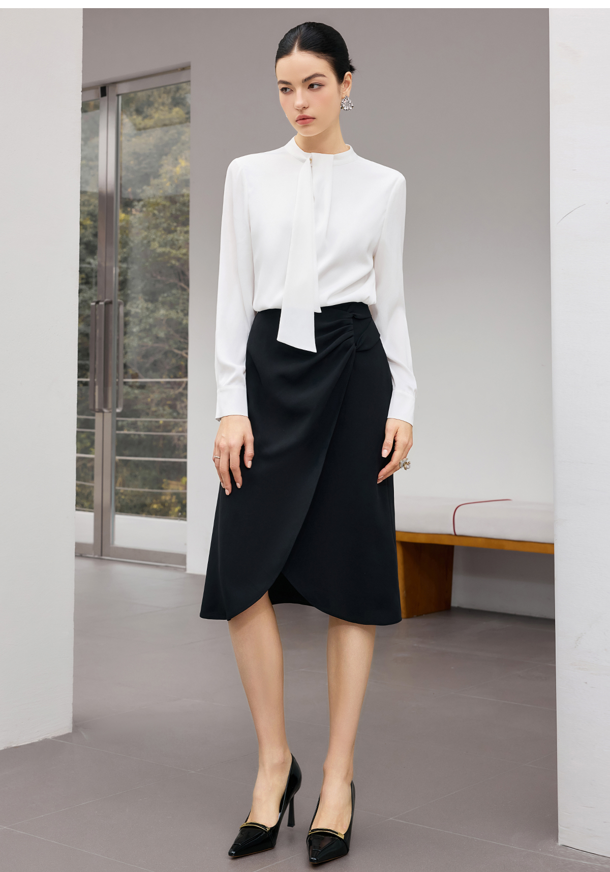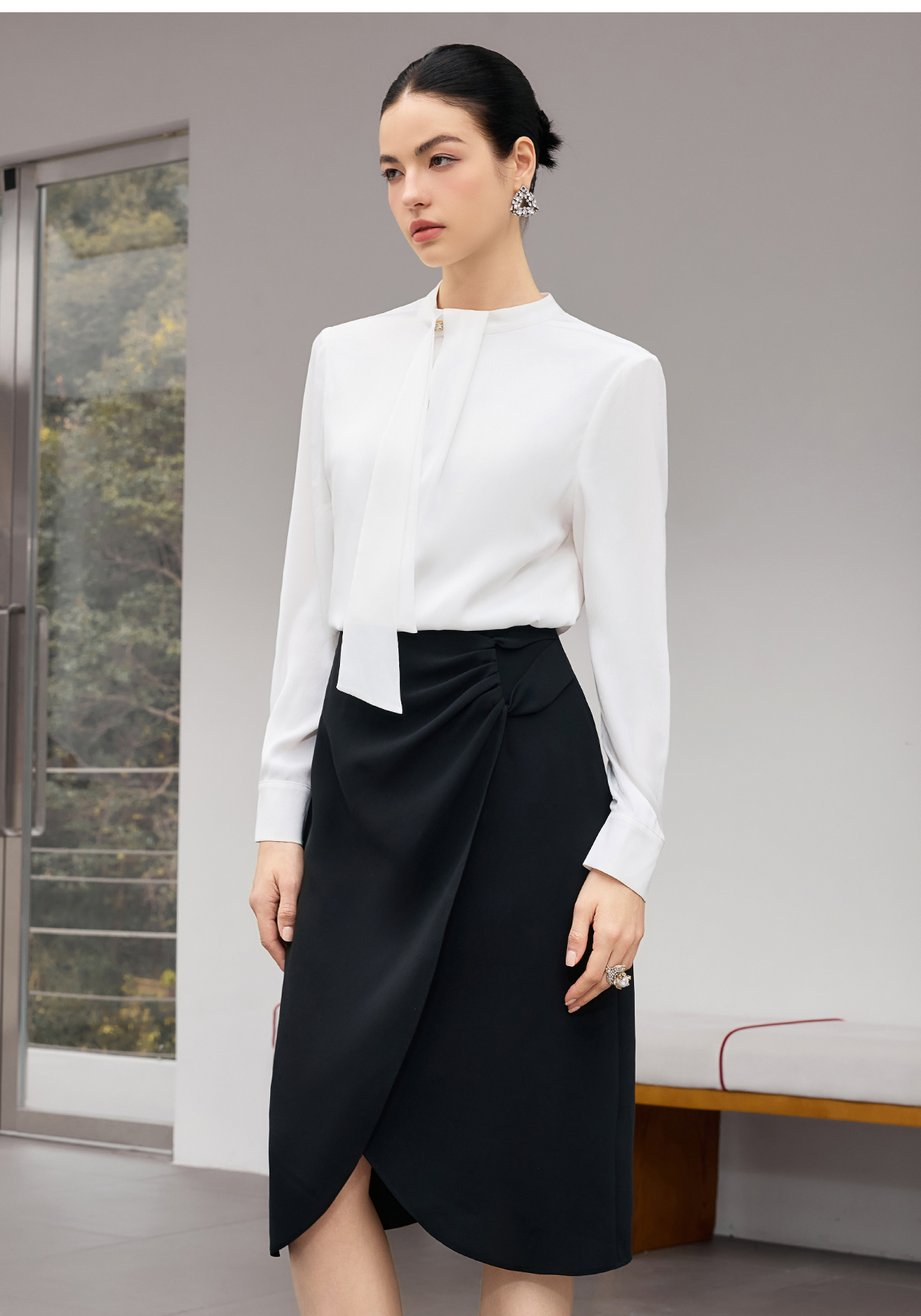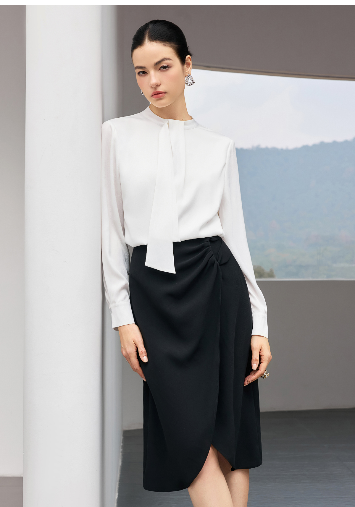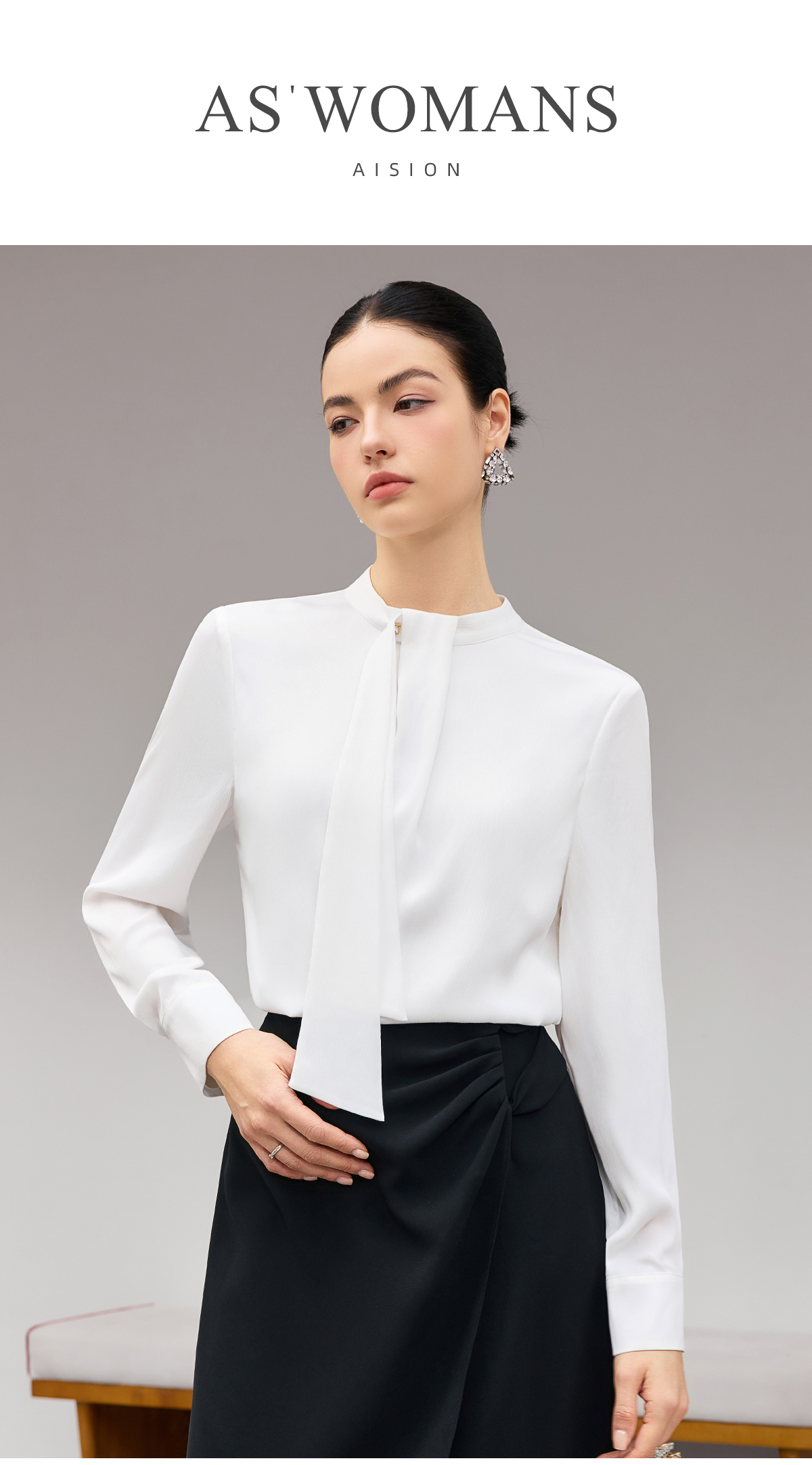 IWY/【白茶清欢】白色飘带衬衫春秋轻奢减龄气质百搭上衣25B922