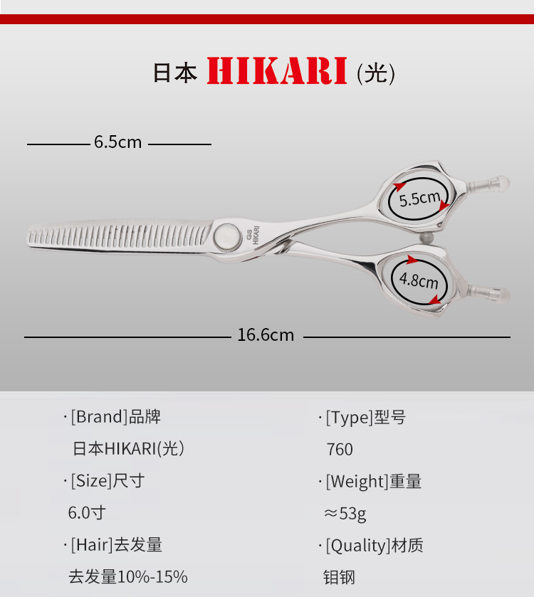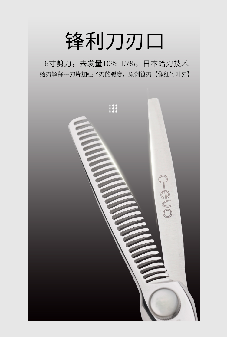 HIKARI光剪c-evo 760 剪刀 女发牙剪/无痕牙剪/调量剪/打薄剪/去发量10-15% /正刃/6寸