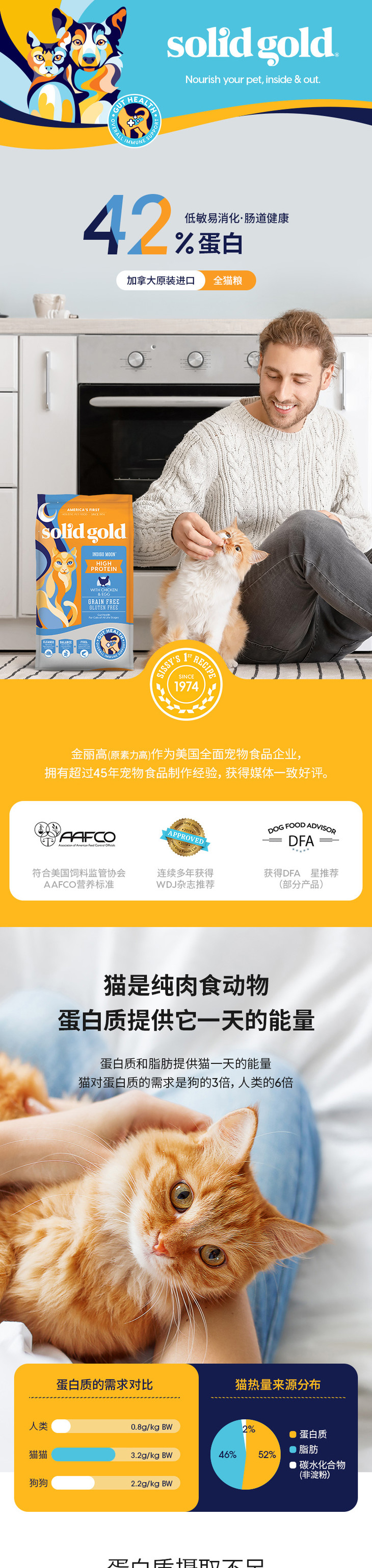 Solid Gold 金装素力高猫粮 金素无谷鸡肉全期猫粮 美版12磅