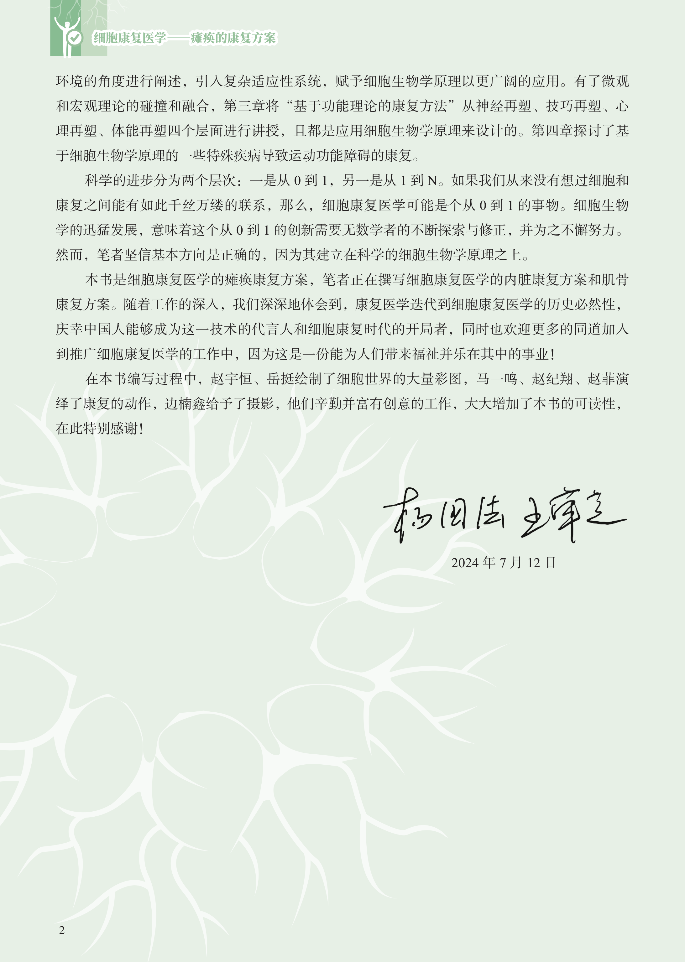 预售正版 细胞康复医学——瘫痪的康复方案 杨国法 王萍芝主编