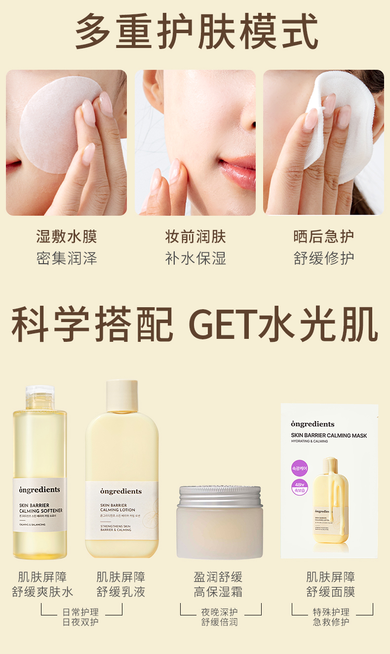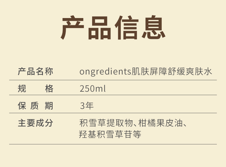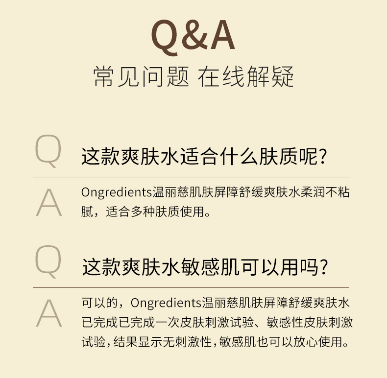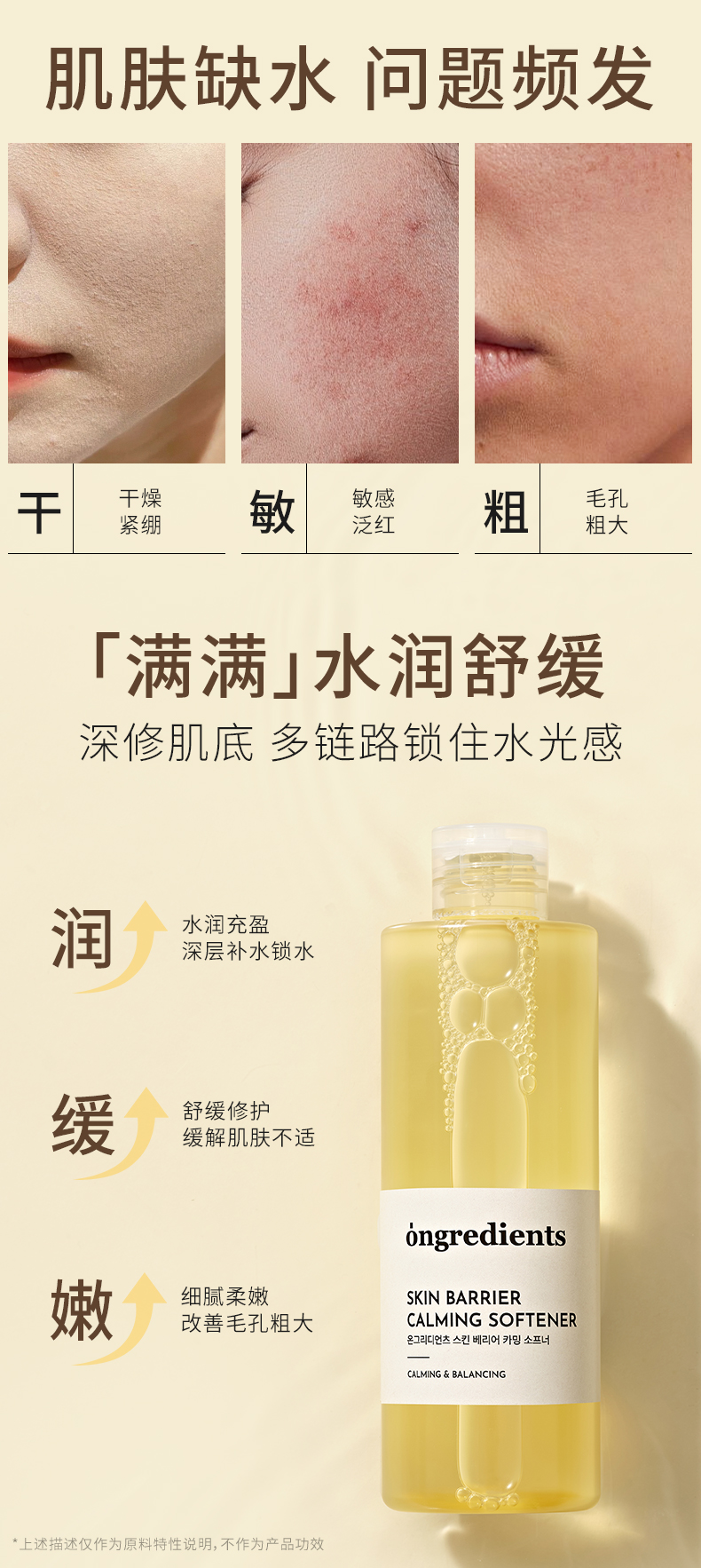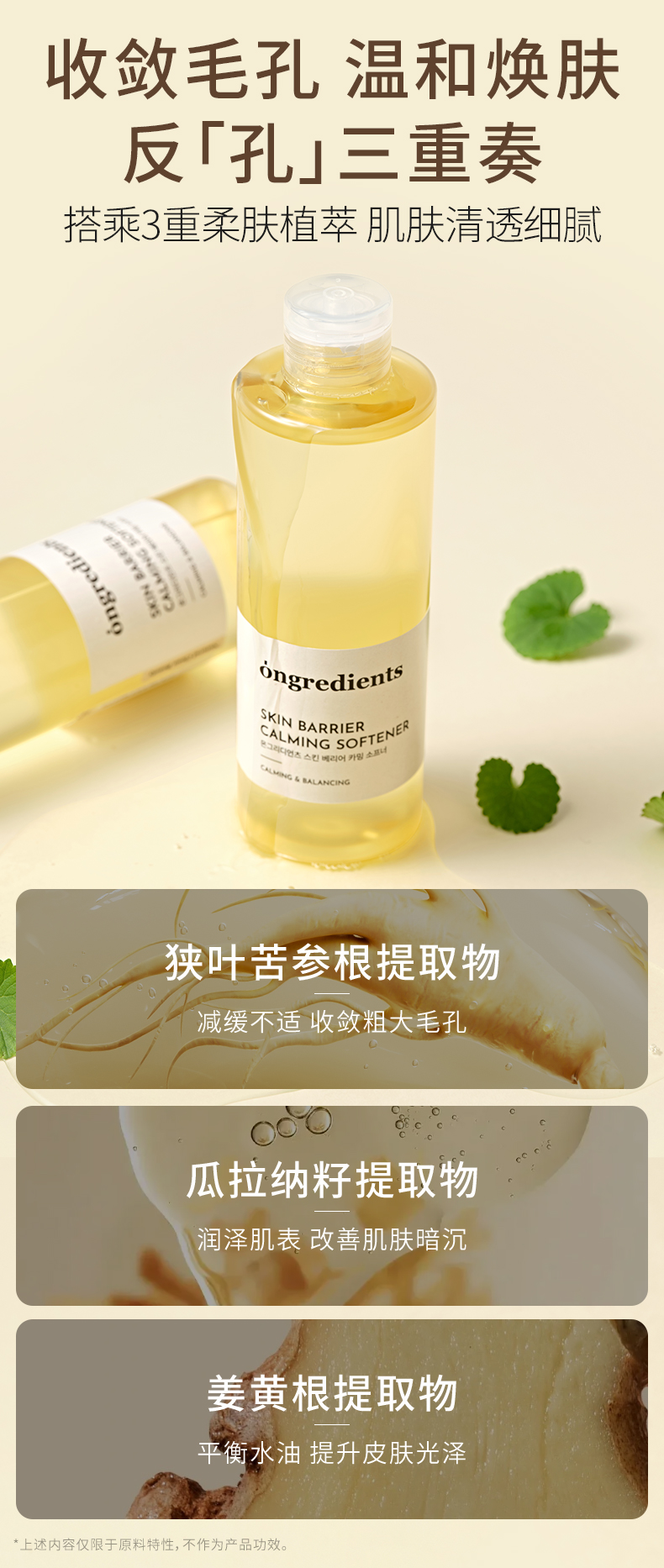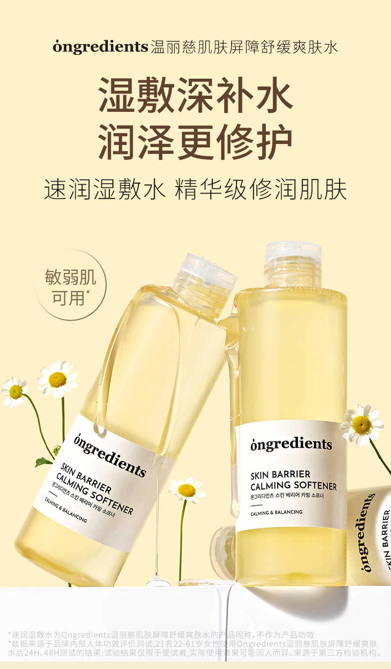 舒缓维稳补水! ongredients温丽慈爽肤水 柔肤精华水平衡水油保湿泛红修护湿敷