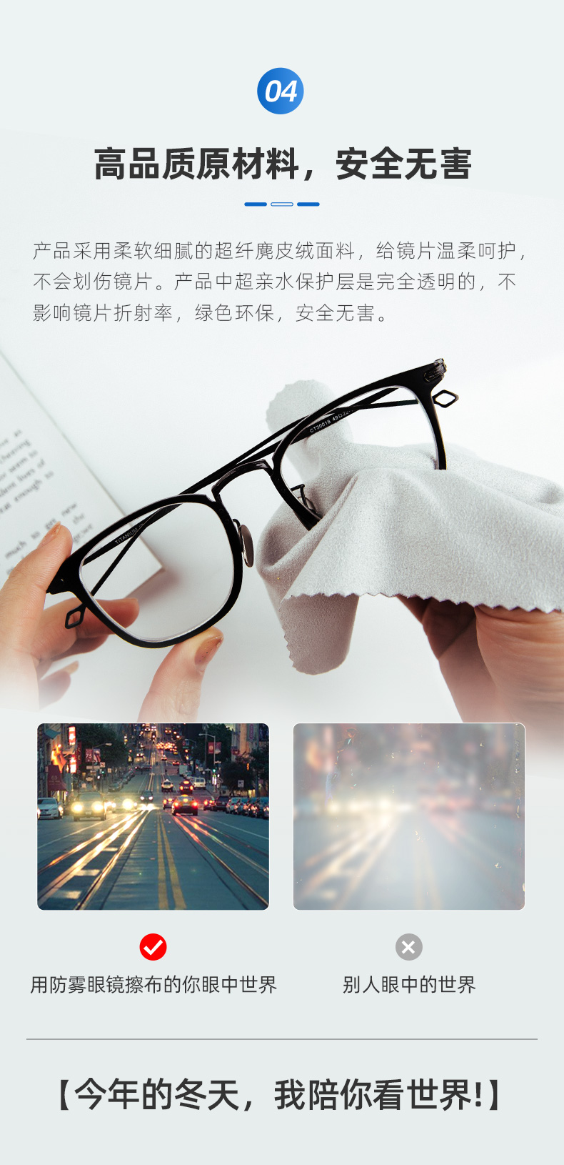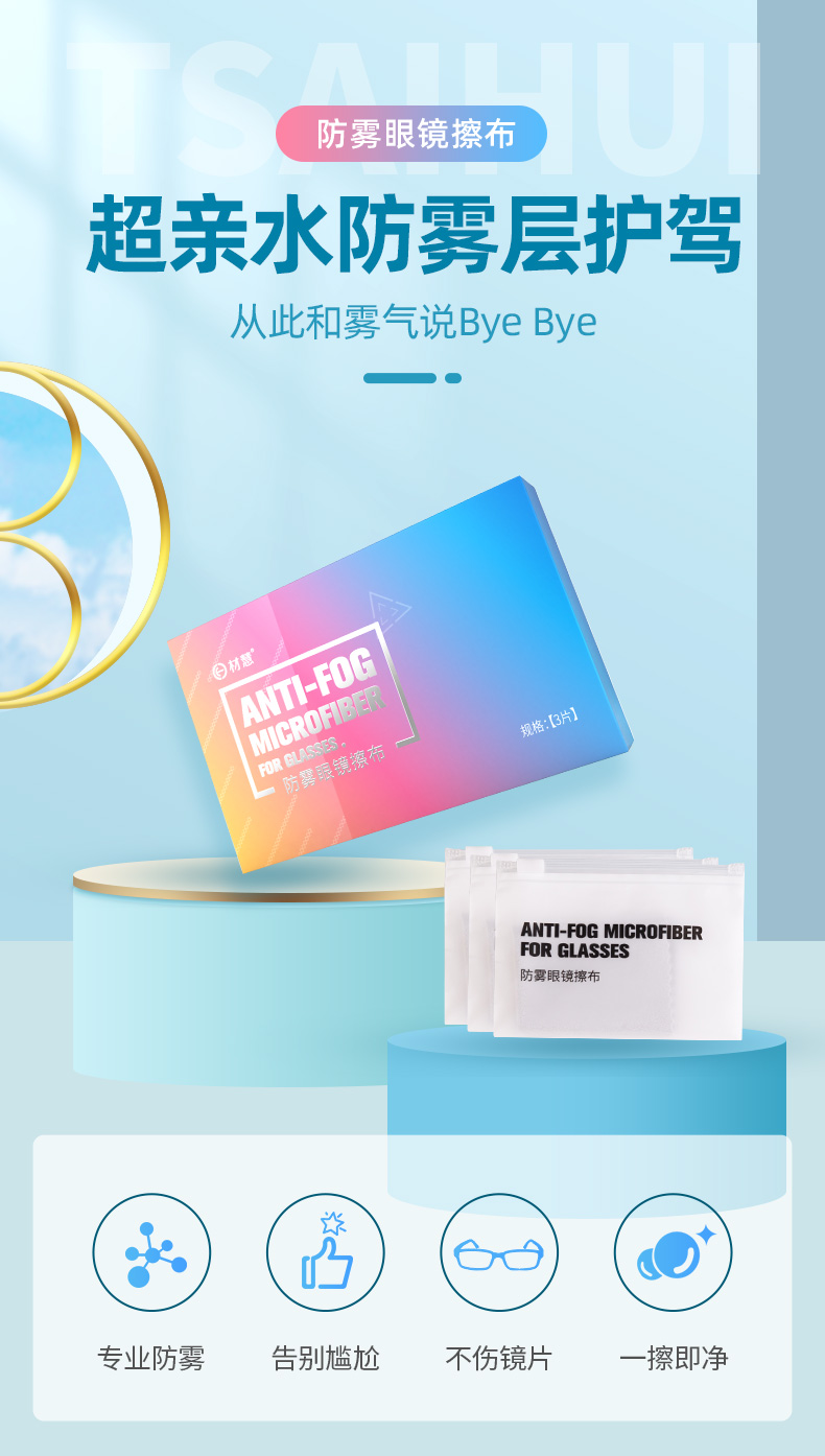 清华研发材慧超纤麂皮绒防雾眼镜布眼镜清洁防雾可重复使用