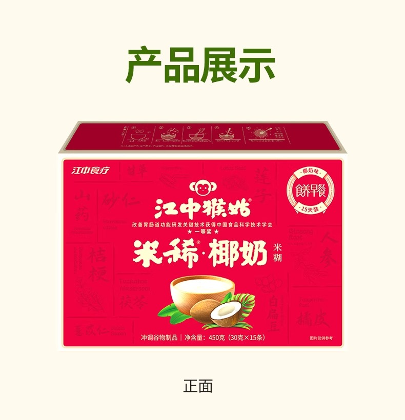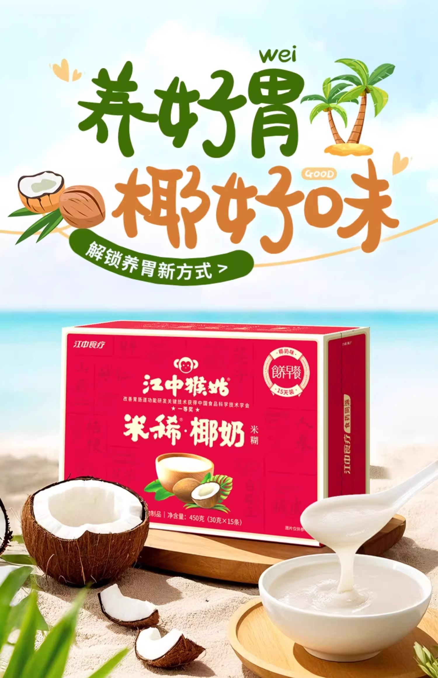 【预售】【一口椰香】江中猴姑米稀椰奶米糊15天装养胃早餐代餐营养膳食纤维益生元冲饮