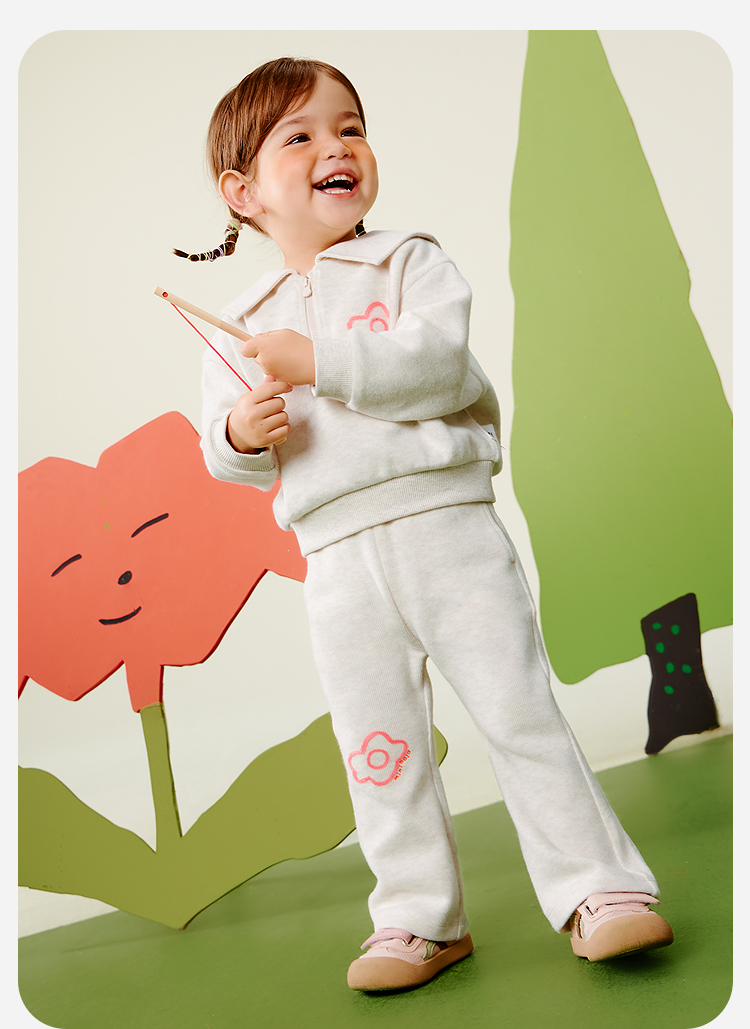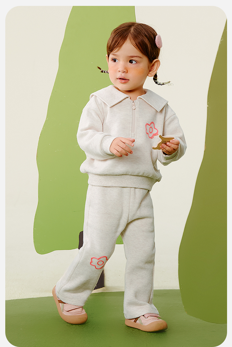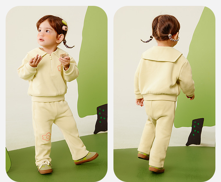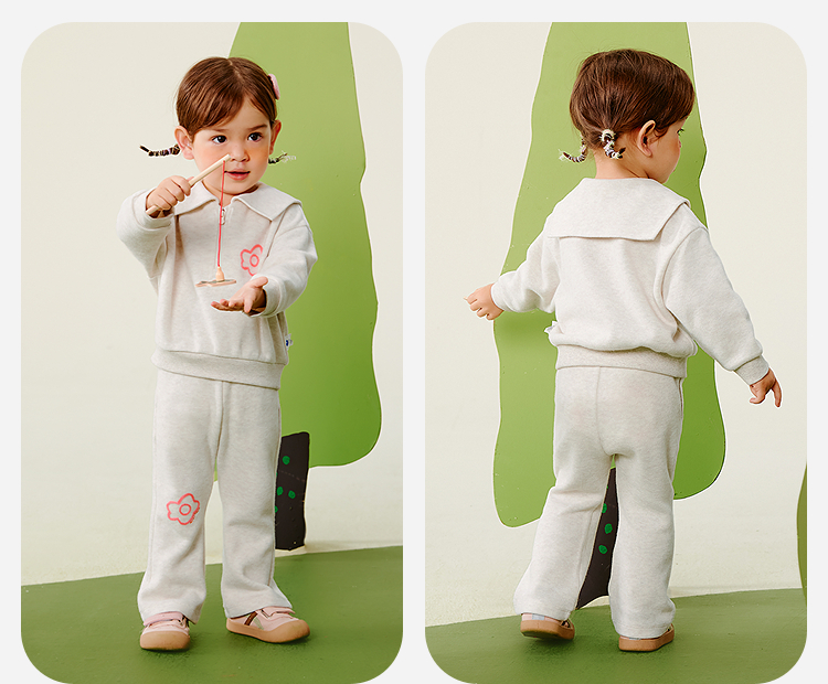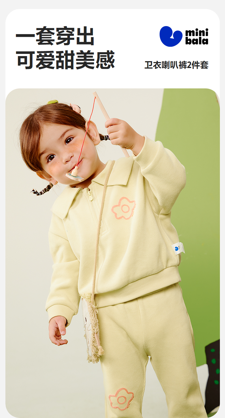 迷你巴拉女童宝宝学院风长袖翻领套装喇叭裤两件套2025秋新品