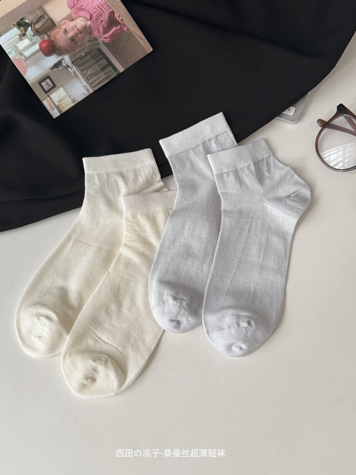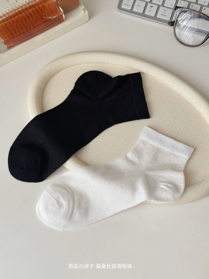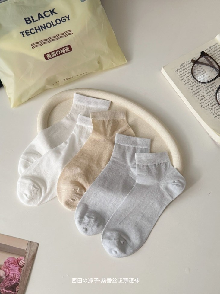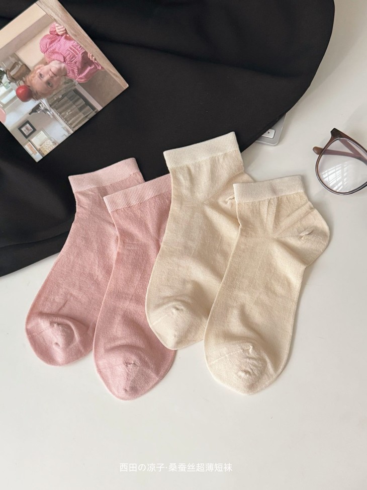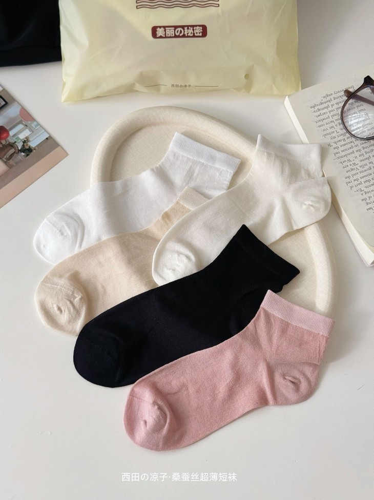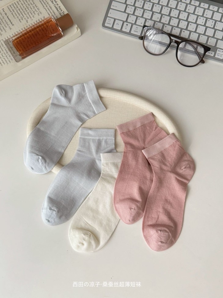 轻奢配色,多种选择,点缀夏日时尚 「西田の凉子」桑蚕丝超薄短袜 精心打造六款百搭柔感色系 每一款颜色都经过精细调配,温柔治愈不失格调 让袜子不仅是基础单品,更是点亮穿搭的小心机 自由选择,搭出你的专属风格演绎夏日轻盈魅力