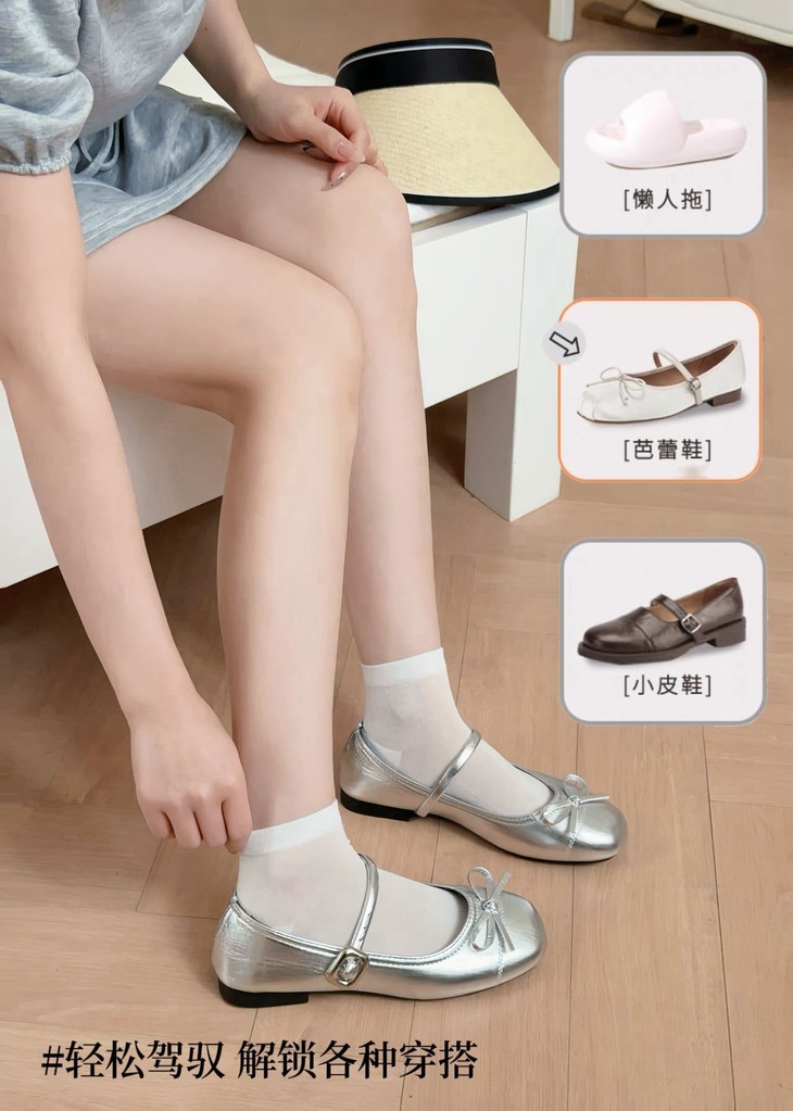 搭配浅色系裙装或小皮鞋 立刻展现知性气质 配上运动鞋又能打造温柔休闲风 轻盈透气的面料,让双脚保持干爽 即使一整天行走,也依然舒适自在 奶白色,给你的日常增添一抹高级感