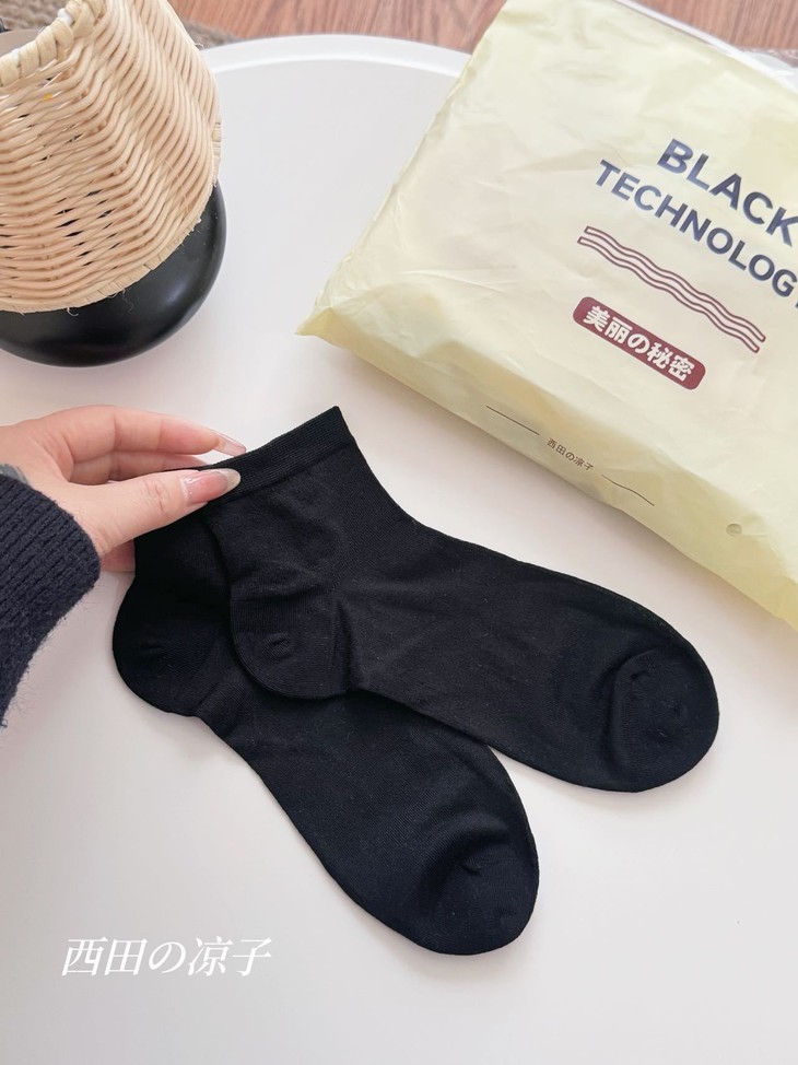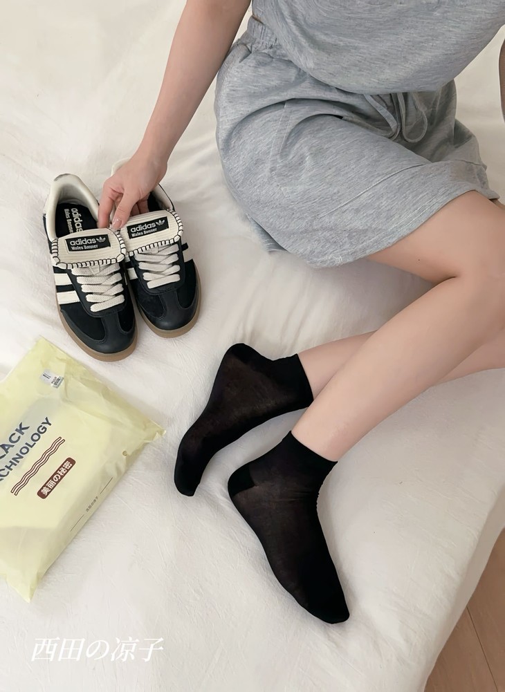 黑色:经典百搭,低调奢华 黑色,永远是时尚界的宠儿 低调却充满高级感 「西田の凉子」黑色桑蚕丝超薄短袜 轻盈透气,宛如隐形 却能在搭配中悄然展现你的品味 黑色不仅耐脏,更适合正式或休闲场合 无论搭配小皮鞋还是运动鞋 都能轻松驾驭,显瘦又显精致