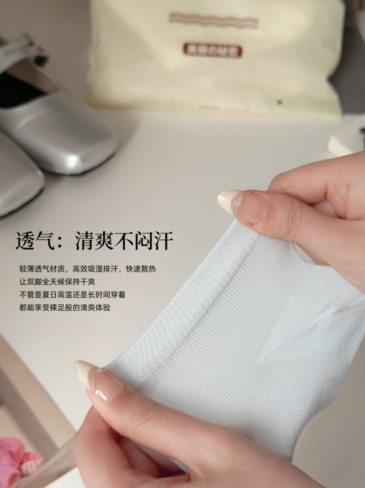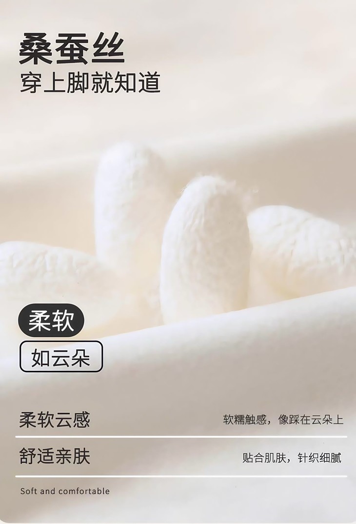 轻盈透气的桑蚕丝材质 让双脚享受“裸足自由” 即使在高温天气也能保持干爽不闷热 穿上浅蓝色袜子,仿佛踩在夏日微风里 带来一整天的轻盈与自在