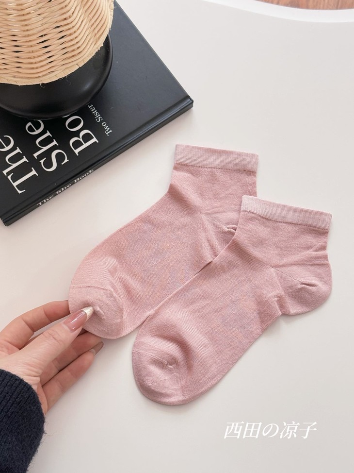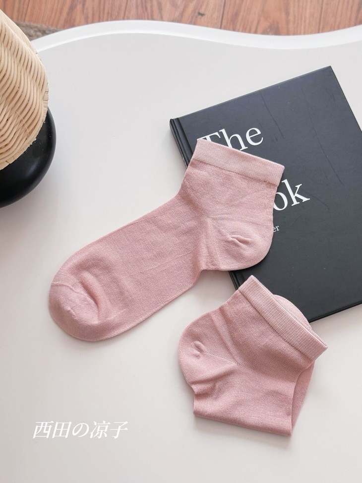 粉色:甜美减龄,少女感满满 想要穿出甜美感? 一双粉色袜子就能轻松点亮你的整体造型 「西田の凉子」粉色超薄短袜 柔嫩的色调带来温暖感 让脚底的每一步都散发出少女气息