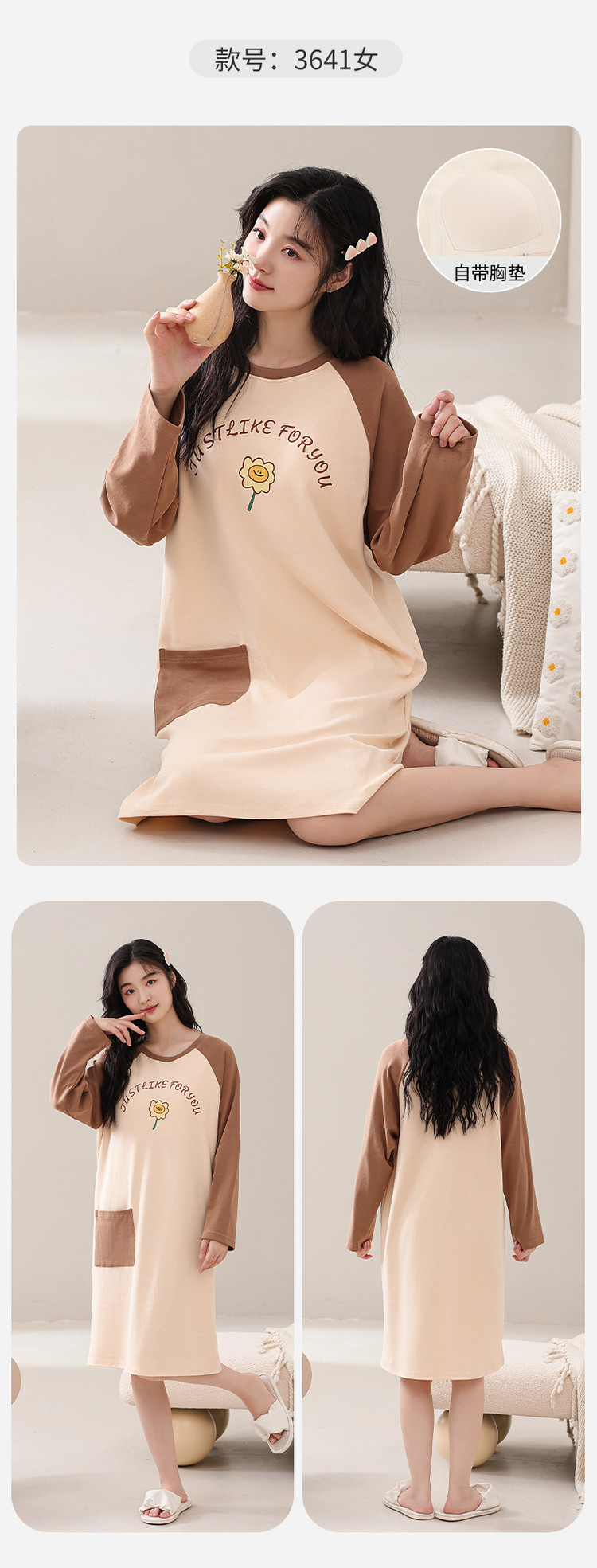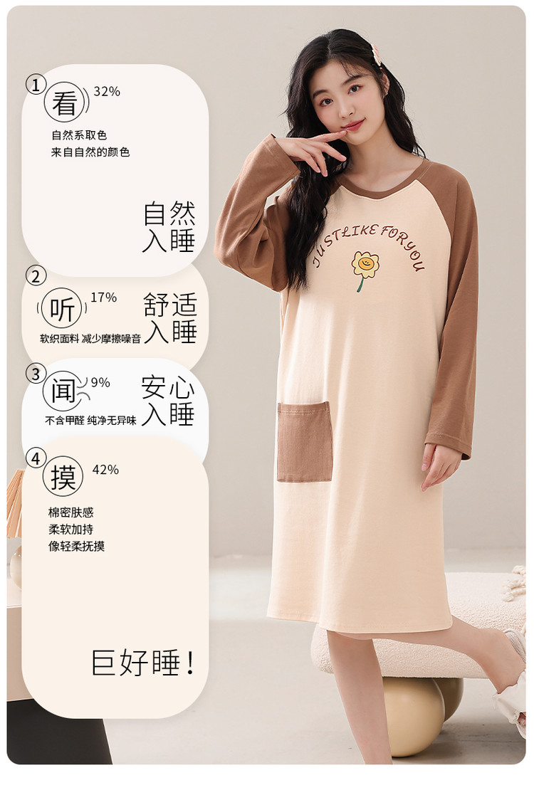康妮雅女式长袖睡裙
