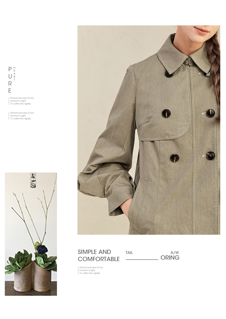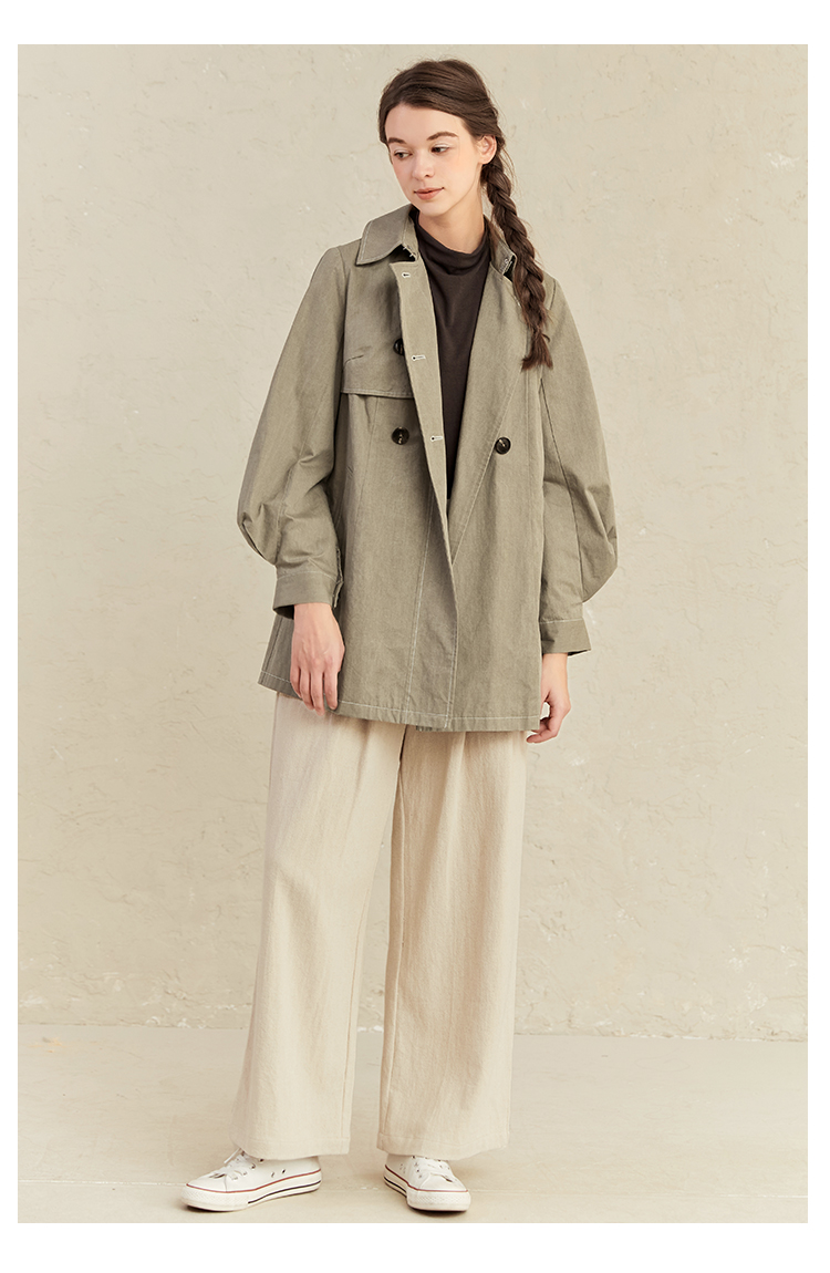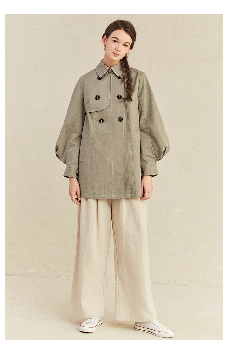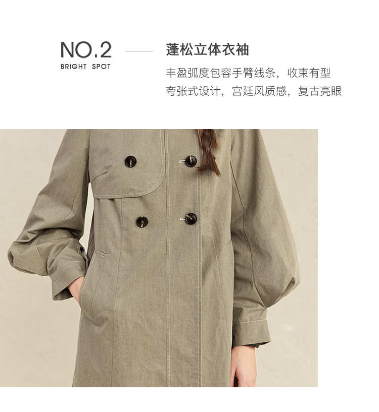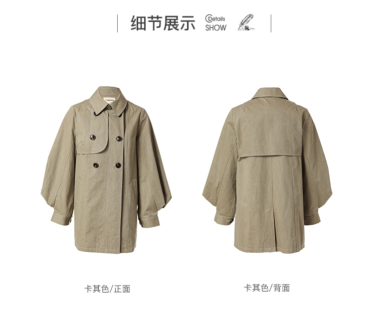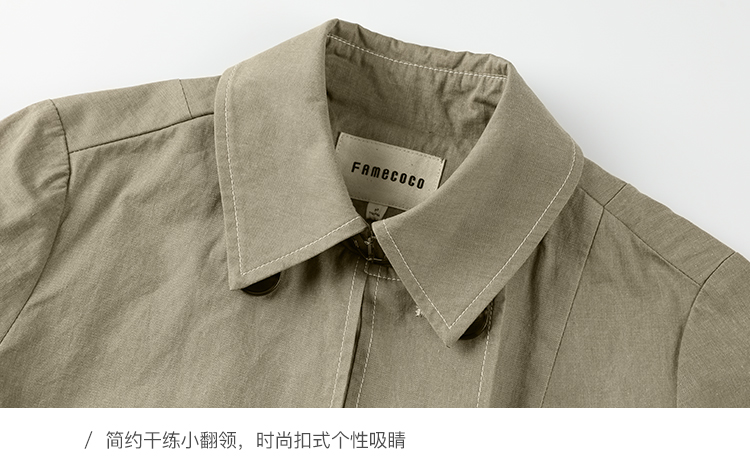 famecoco范可儿卡其中长风衣女春秋纯棉灯笼袖外套F221AA003