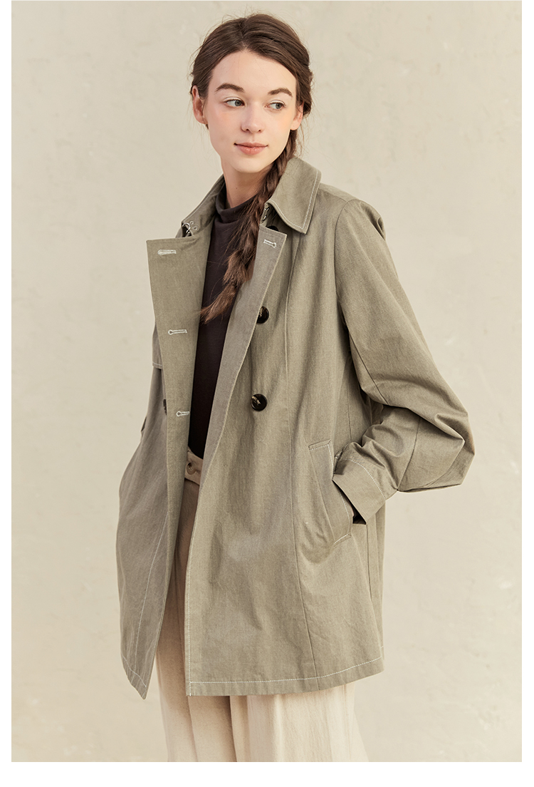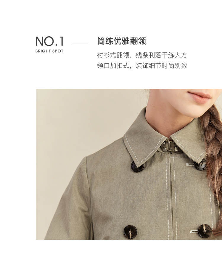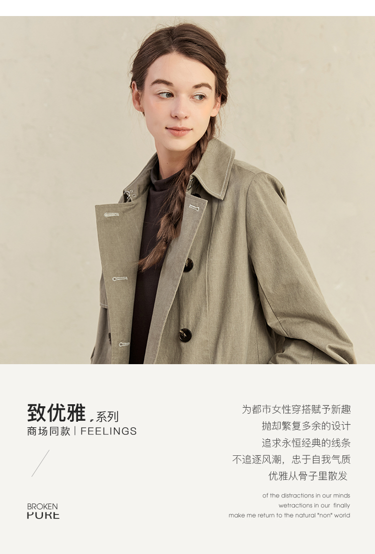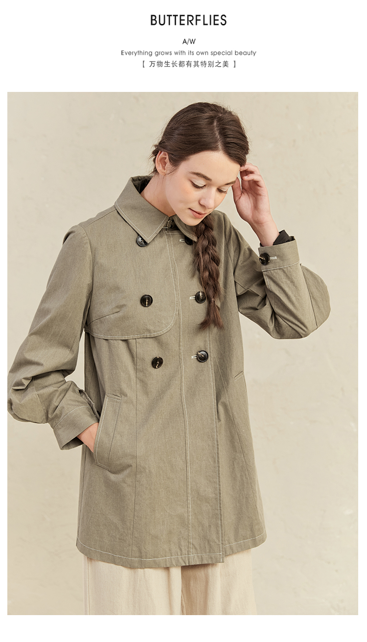 famecoco范可儿卡其中长风衣女春秋纯棉灯笼袖外套F221AA003