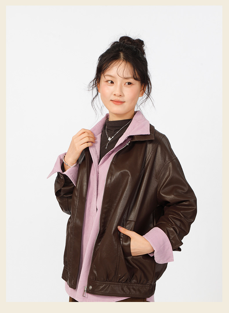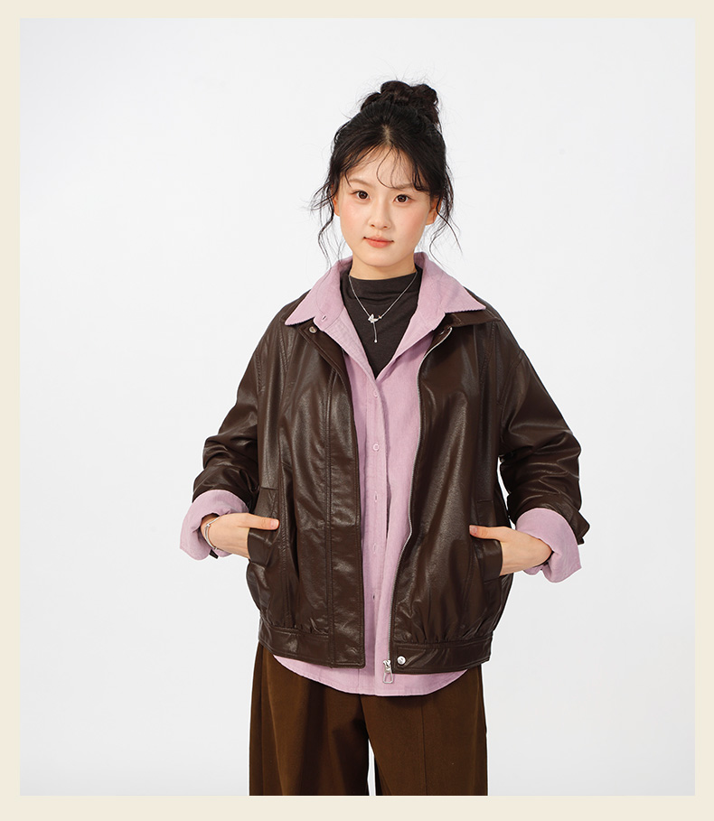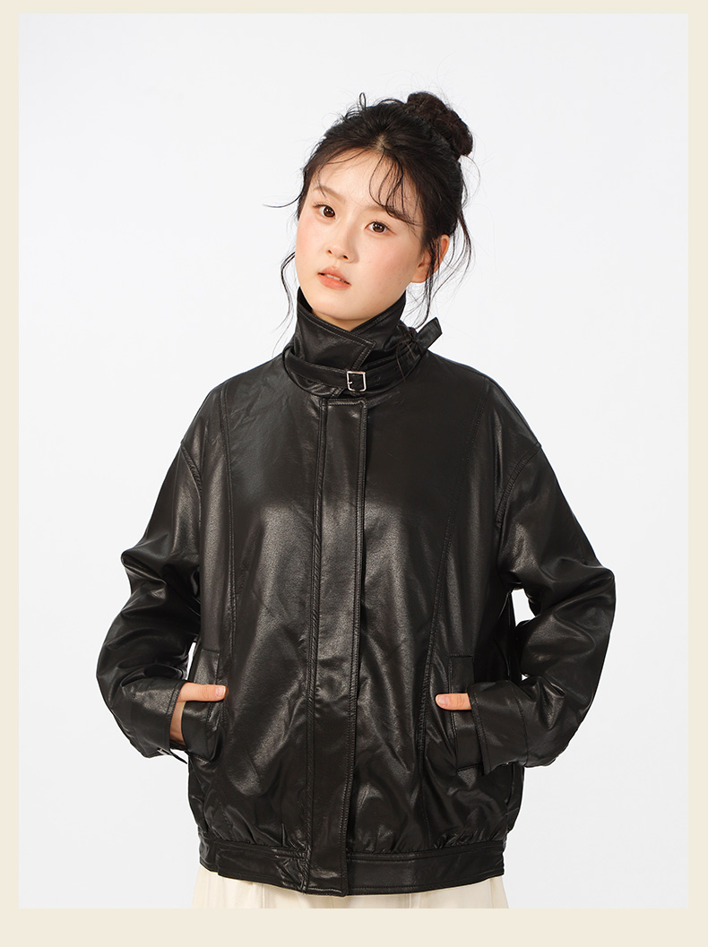 基本款立领皮衣外套-纪念日百货门店同款166844490