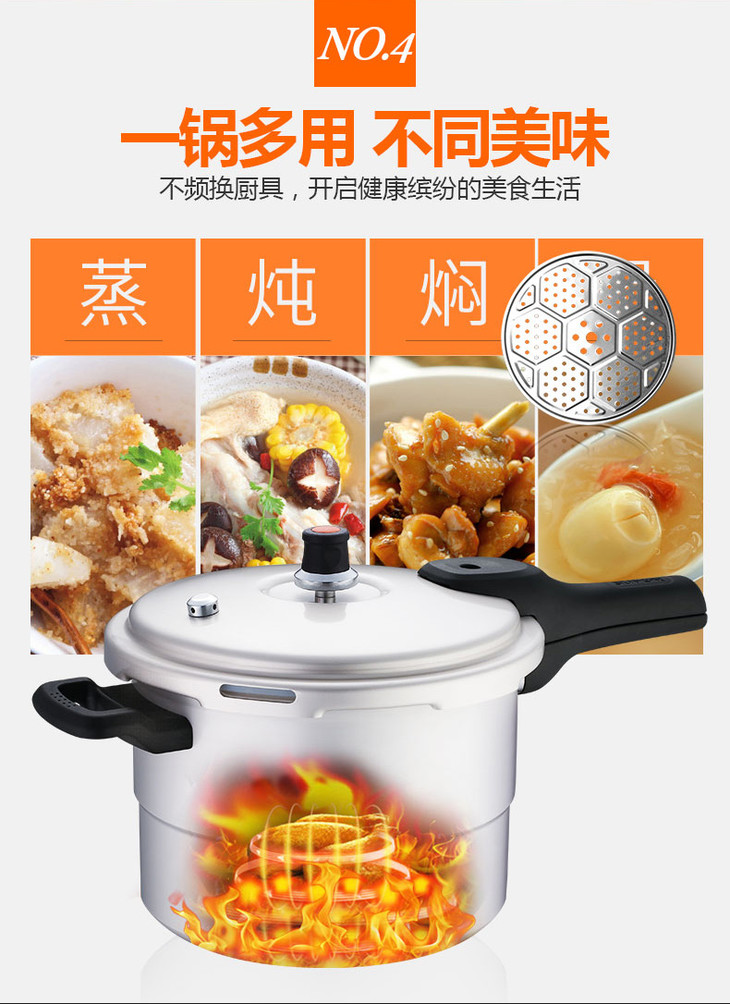 苏泊尔(551298)(SUPOR)好帮手压力锅铝制压力锅高压锅快锅24cm 带蒸格YL249H2明火专用