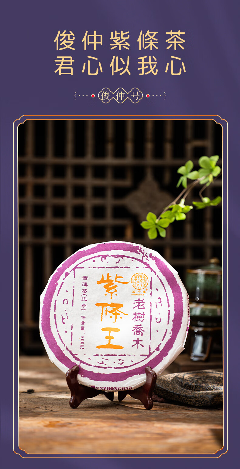 俊仲号紫條王普洱茶生茶茶饼盒装 【口粮尝鲜品鉴】500克 包邮