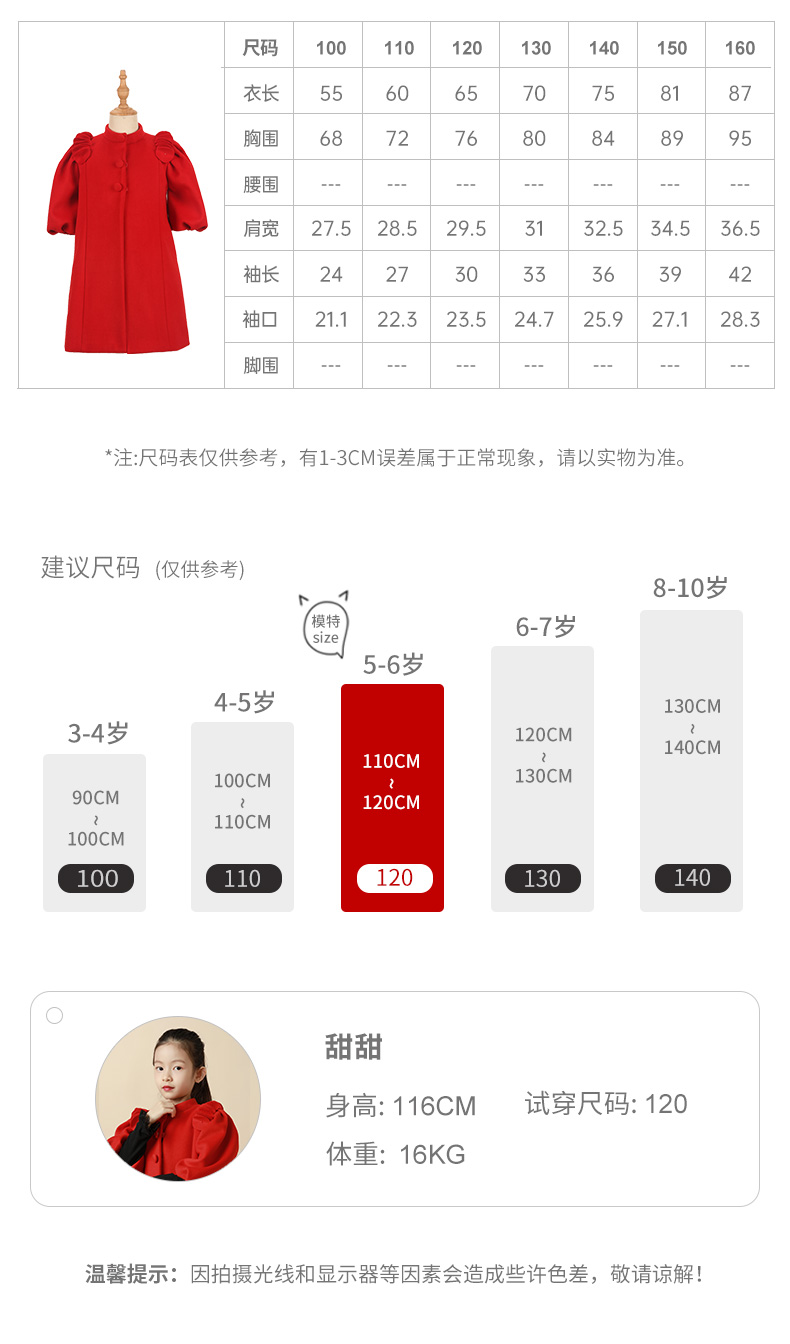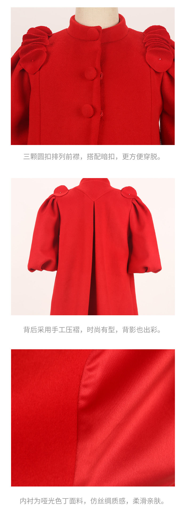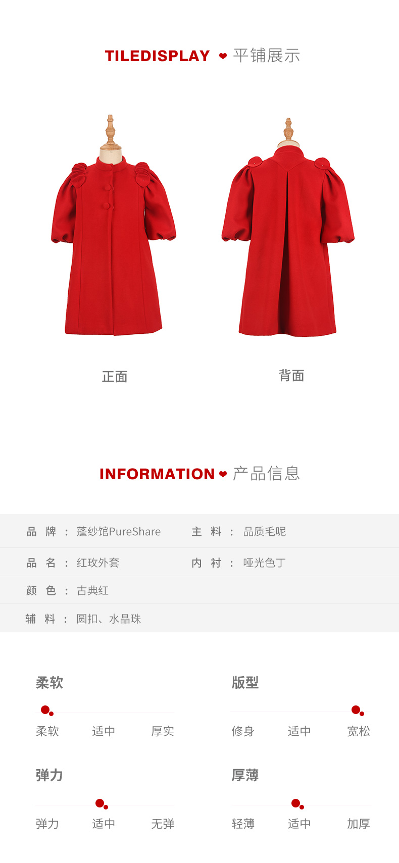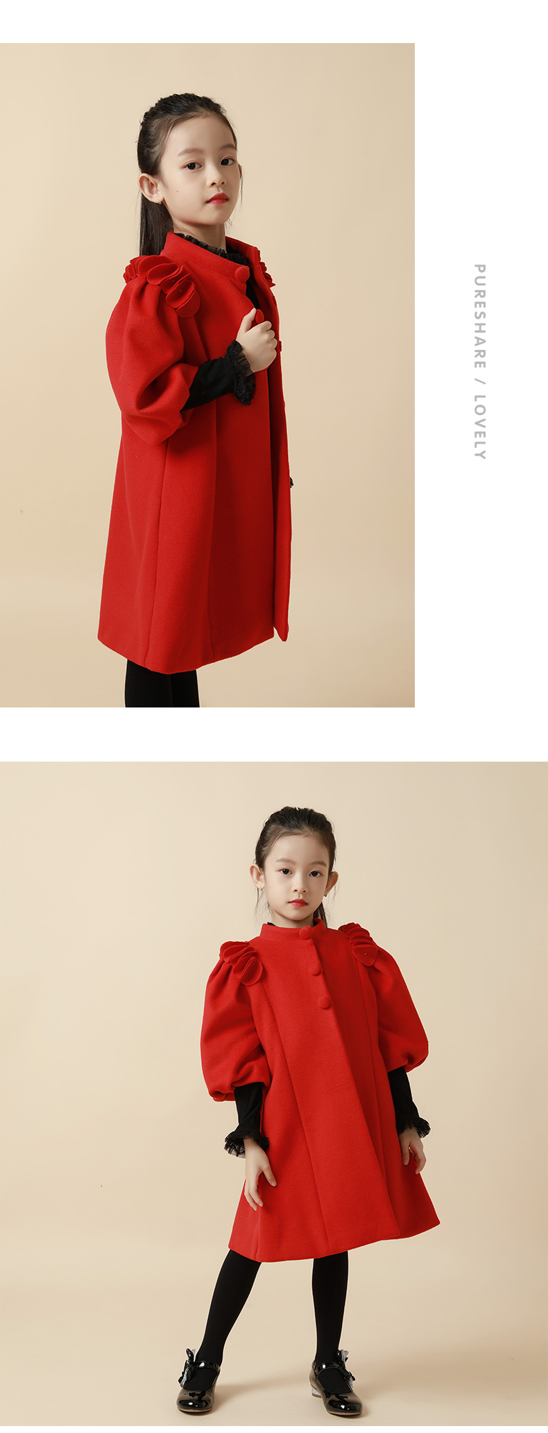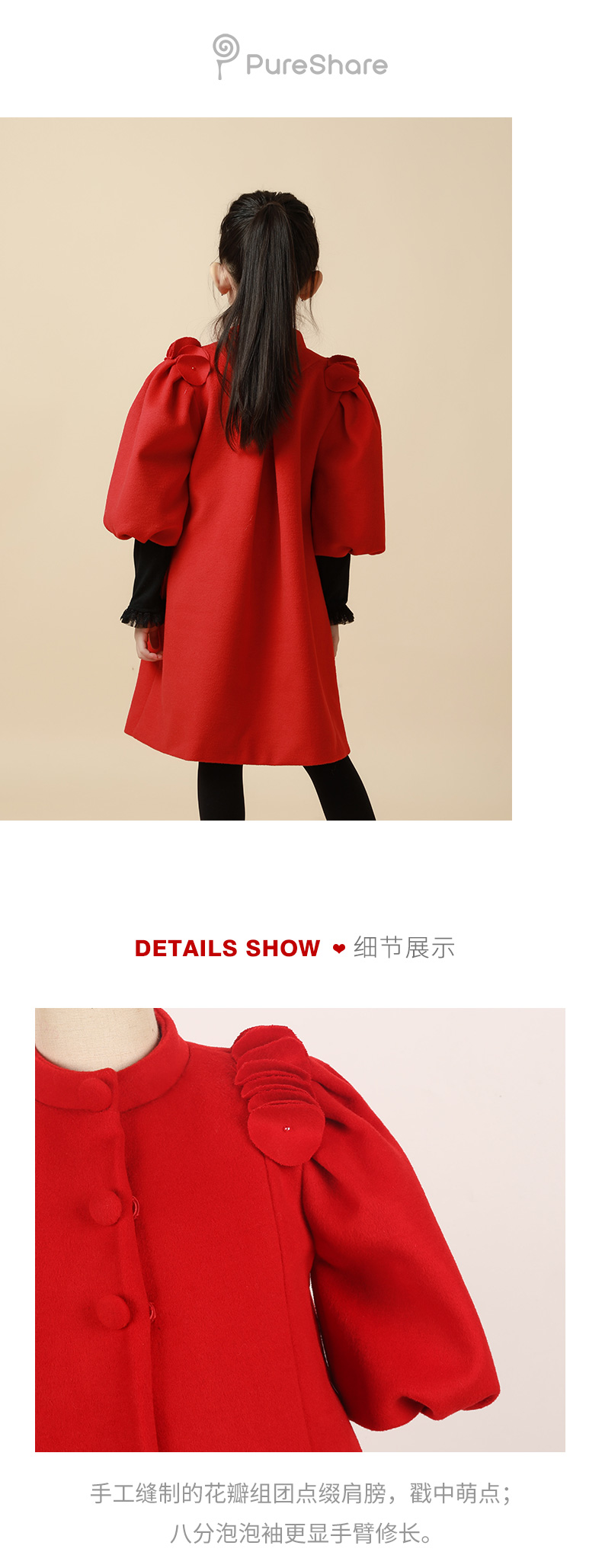 非质量问题不退换哦~PureShare女童公主裙时髦加厚毛呢秋冬款连衣裙-红玫外套