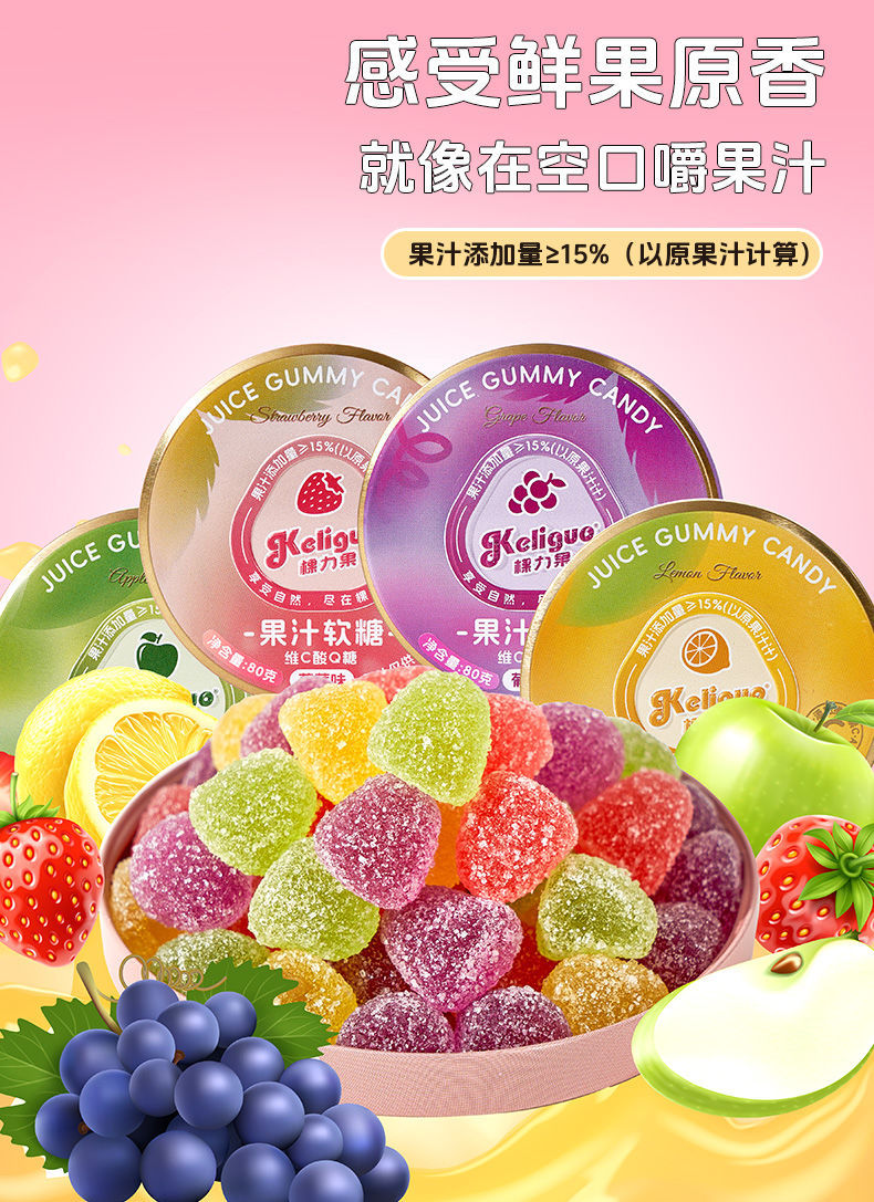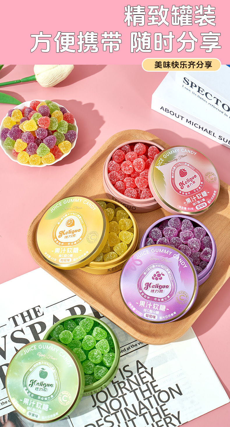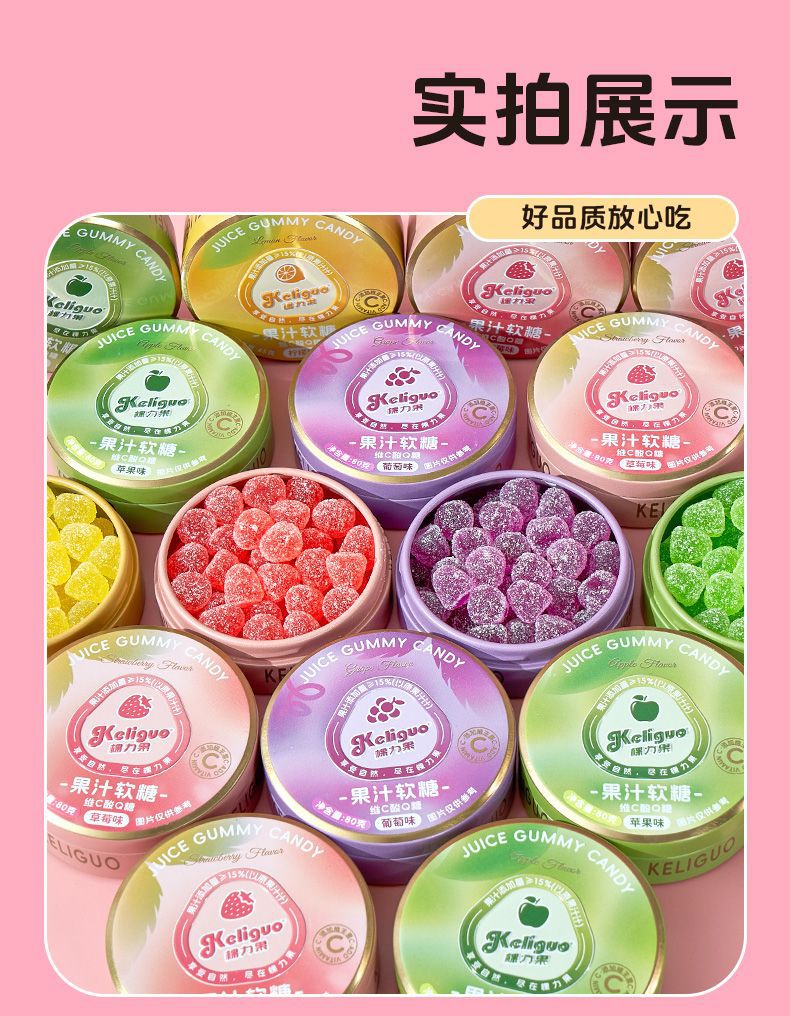 【日常维C❗️果汁酸q糖】感受鲜果原香,就像在空口嚼果汁,软糯q弹越嚼越美味,糖酸砂软糖便携糖果盒随身携带小零食QQ