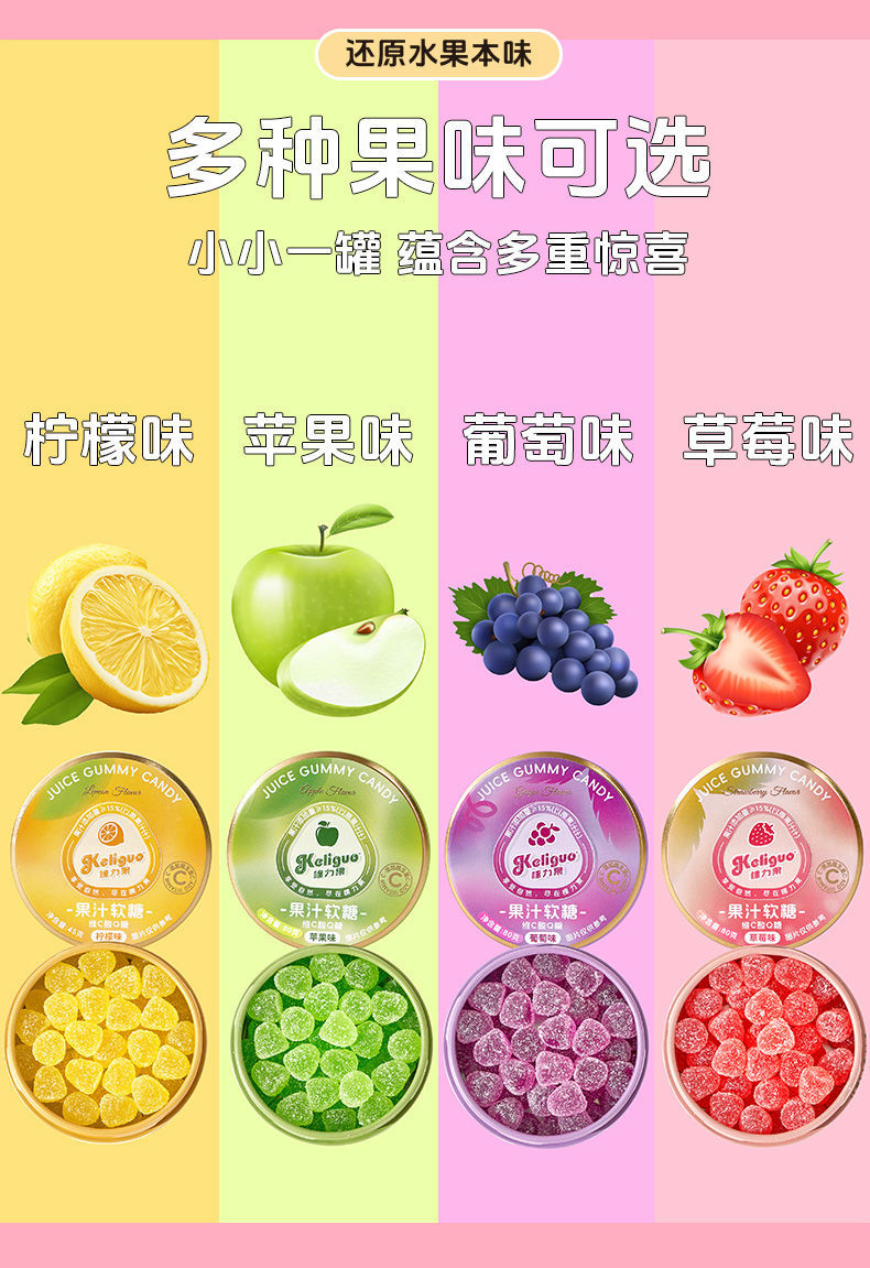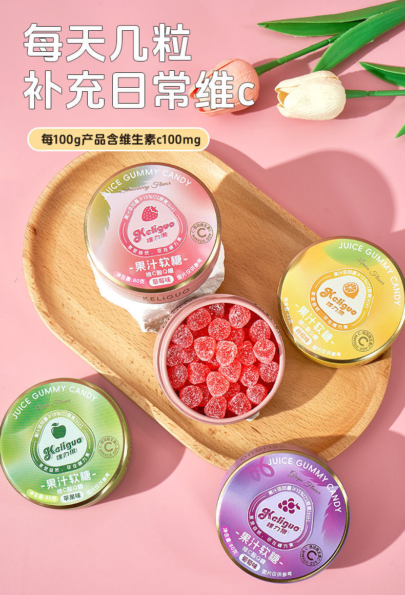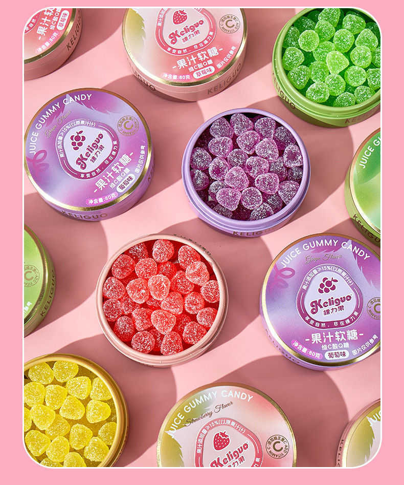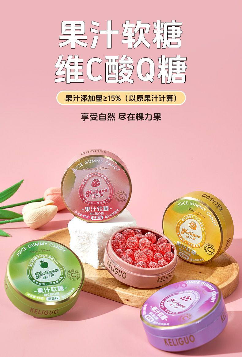 【日常维C❗️果汁酸q糖】感受鲜果原香,就像在空口嚼果汁,软糯q弹越嚼越美味,糖酸砂软糖便携糖果盒随身携带小零食QQ