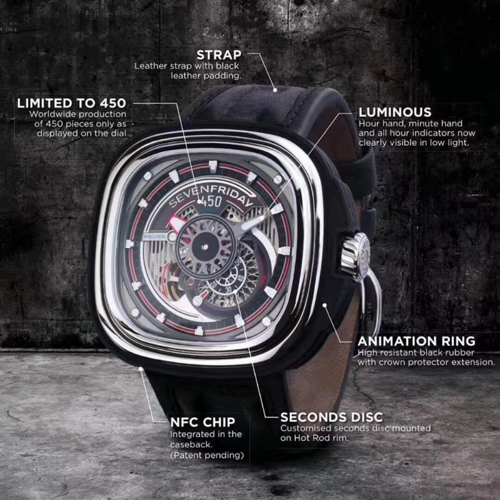 W0011N1980 七个星期五SEVENFRIDAY P3C/01型享特罗德手表为上述各系列产品之外的一款限量版手表,全球仅生产四百五十块。机芯为进口Miyota 82S7全自动机械手表