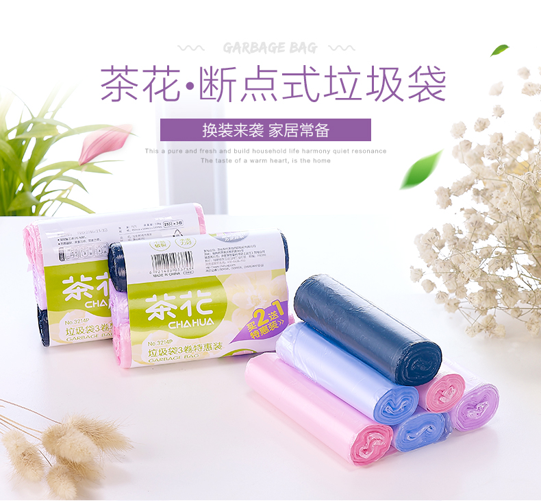 茶花垃圾袋 45*55 cm家用加厚卷装黑色一次性宿舍用手提拉圾厨房塑料袋