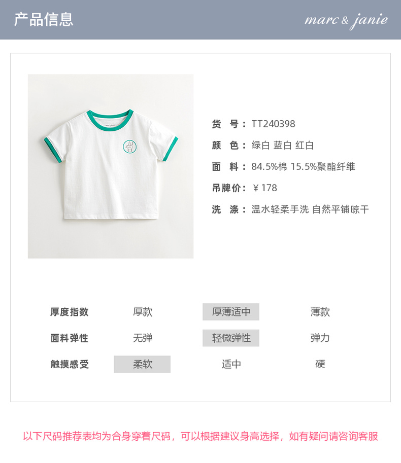 【凉感透气】马克珍妮男童撞色短袖T恤儿童上衣夏装新款240398
