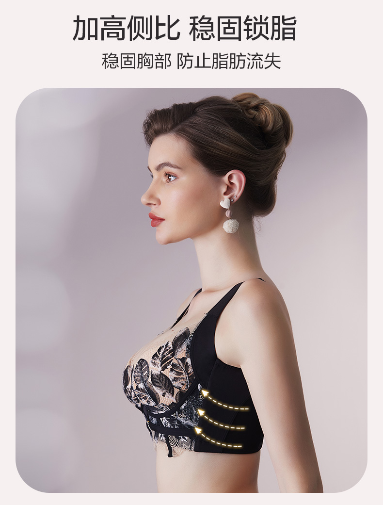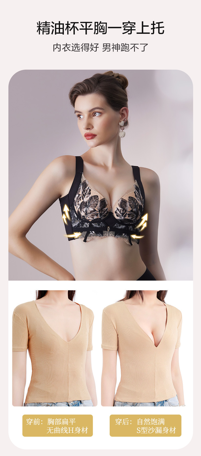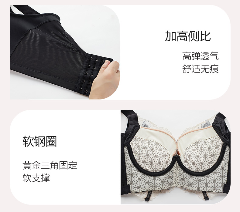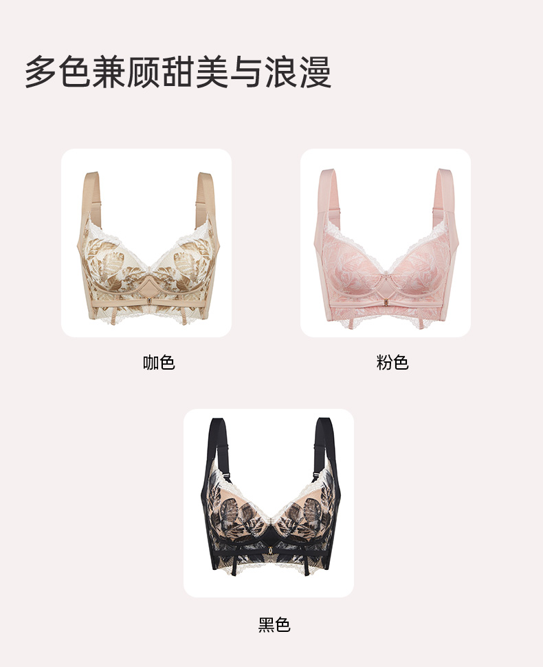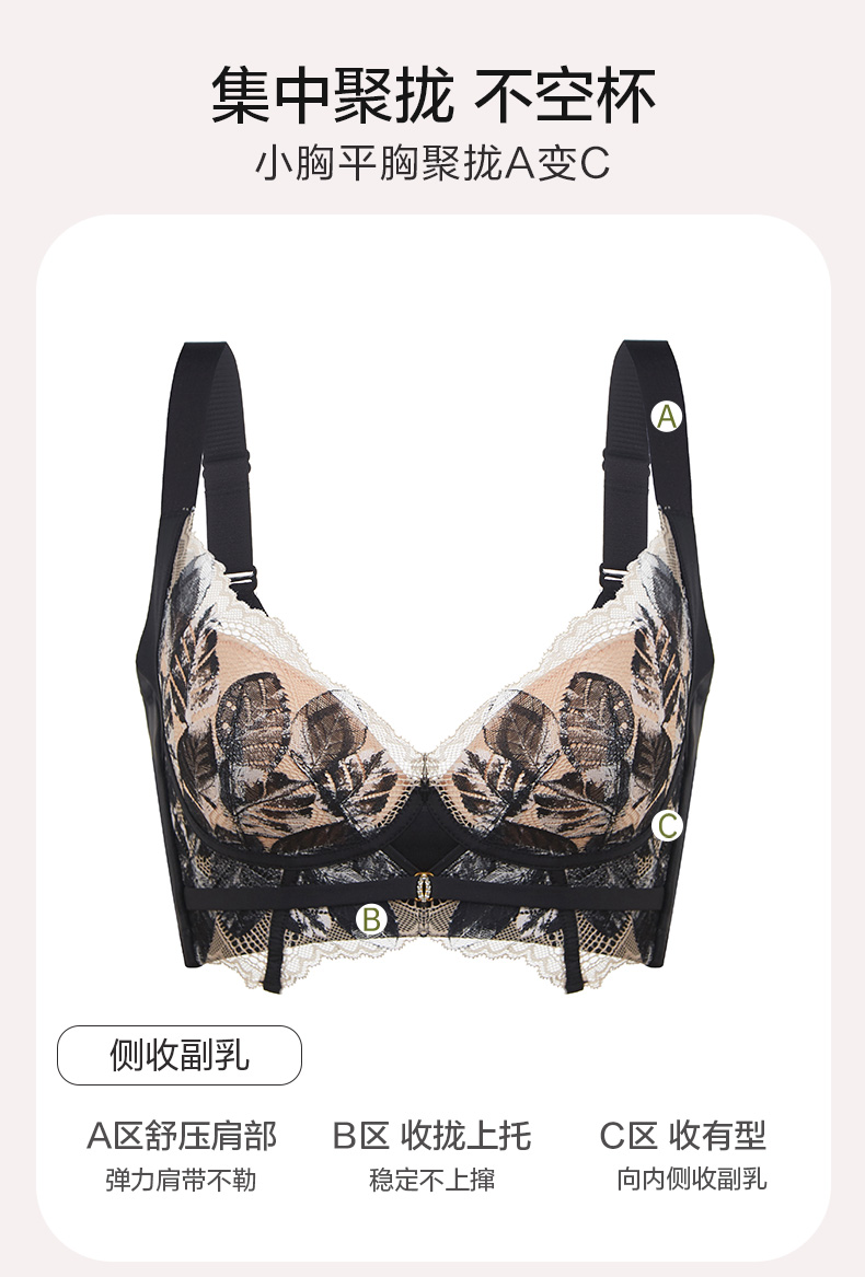轻奢法式精油杯文胸 小胸显大软钢圈 深V厚杯聚拢 柔软承托不下垂 感温记忆3D立体数码印花蕾丝