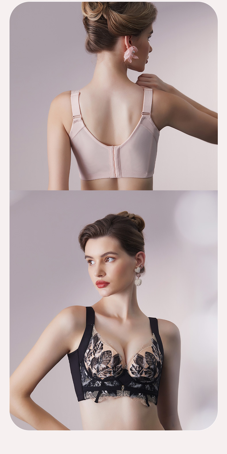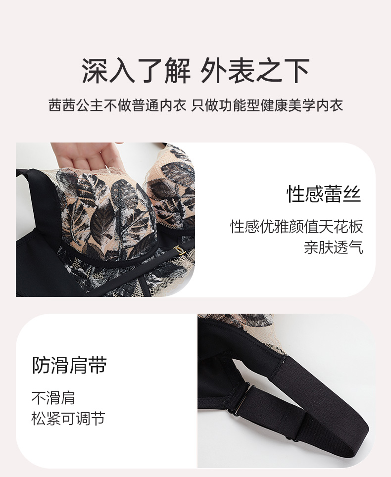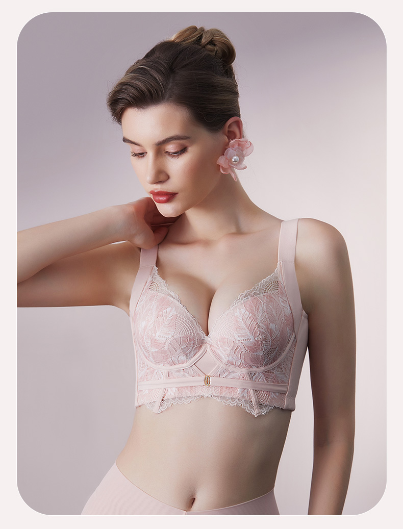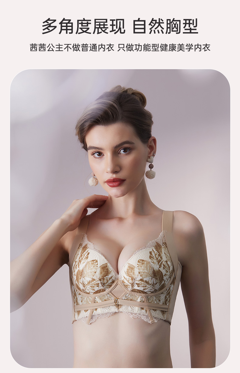 轻奢法式精油杯文胸 小胸显大软钢圈 深V厚杯聚拢 柔软承托不下垂 感温记忆3D立体数码印花蕾丝