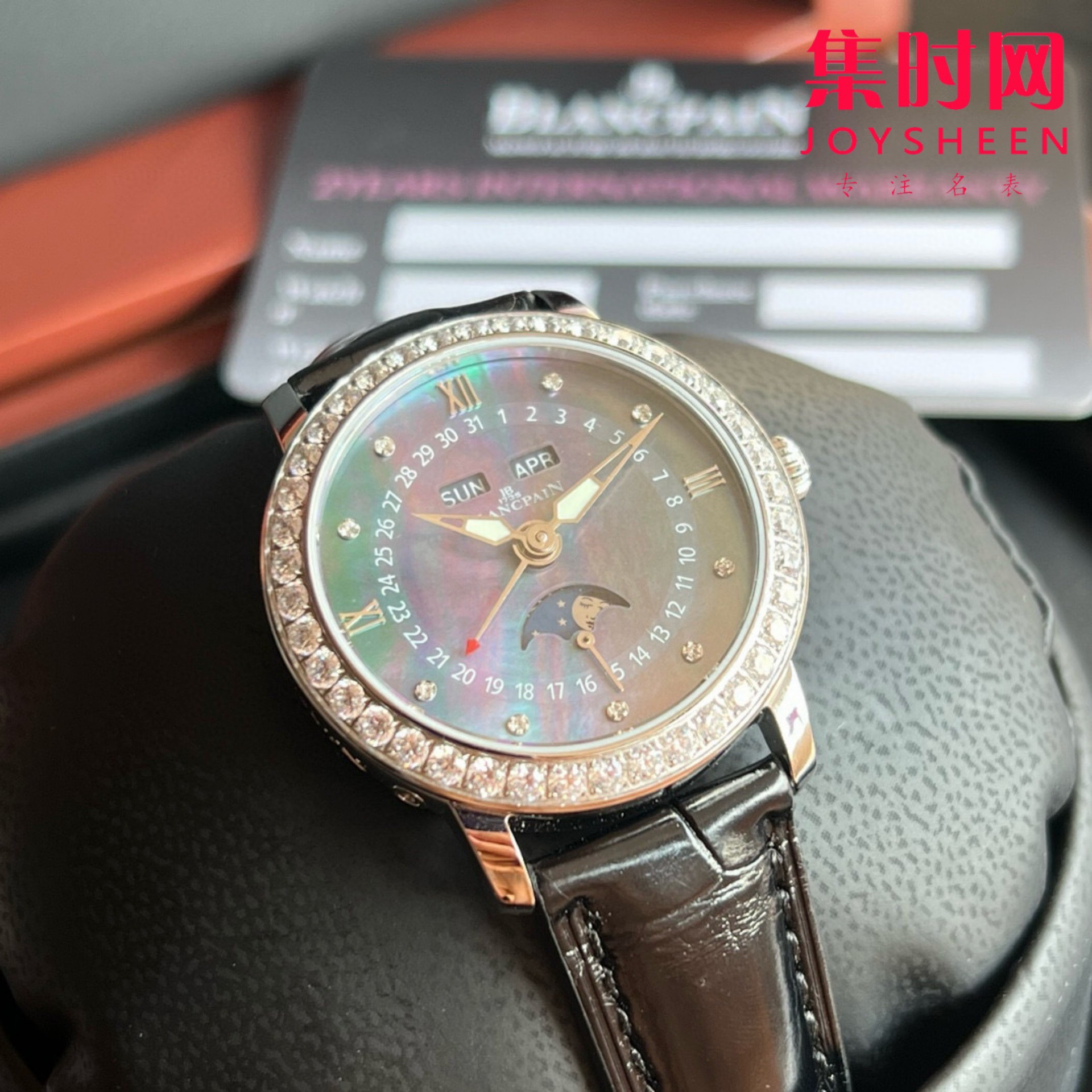 宝铂月亮美人天然贝母盘女表,女装3663全历月相腕表35mm,聘请制表师傅通过两年无数次测试,期间损坏机芯上百个,从星期,月相,到日历,月份一一还原正品制表特质,以相同方式展现其隽永魅力! 推出新品腕表,十二点位置两个窗口分别显示星期和月份,腕表在6点钟位置的副表盘可读取月相显示,中间圈指示日期,边缘位置则显示时钟!原装尺寸35mm,腕表前后均采用蓝宝石水晶玻璃,皮带采用进口鳄鱼皮,表扣则与表壳同材质的原装折叠扣,机芯则搭载定制cal.6763全自动机械机芯,大能量度还原正品!