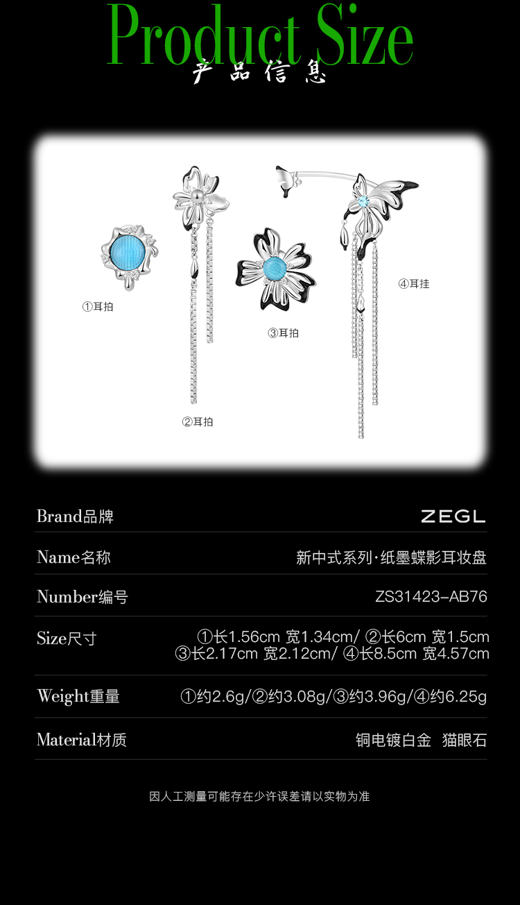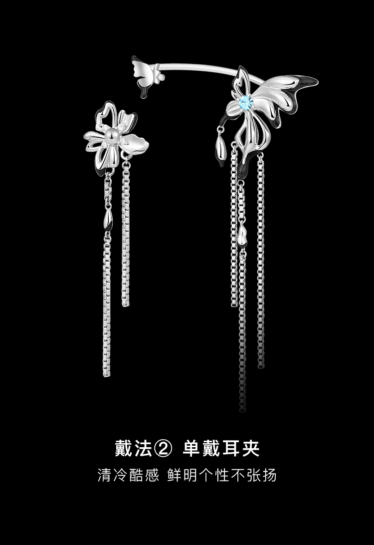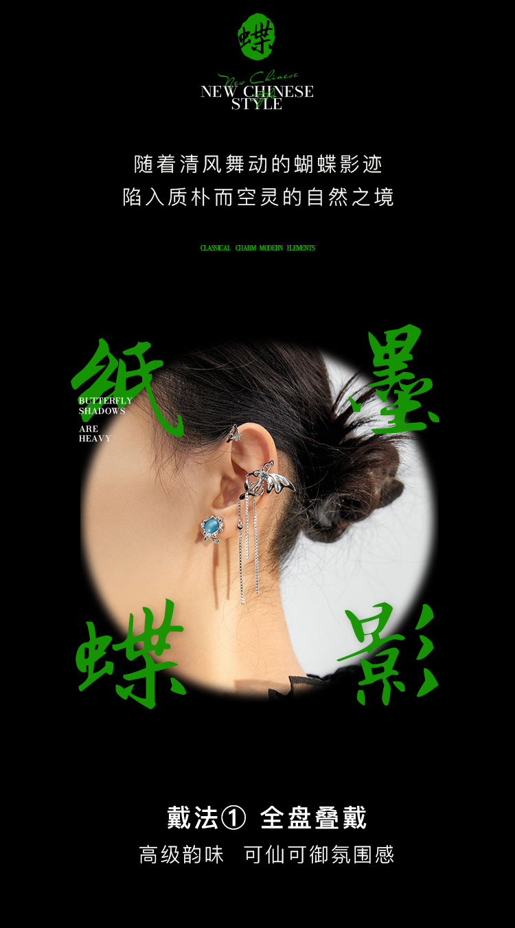 【SVIP积分兑换】ZEGL设计师新中式蝴蝶耳妆盘流苏耳夹女无耳洞高级感小众耳环耳饰