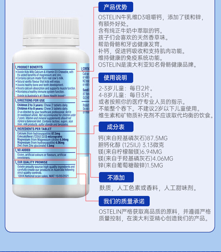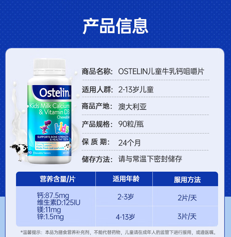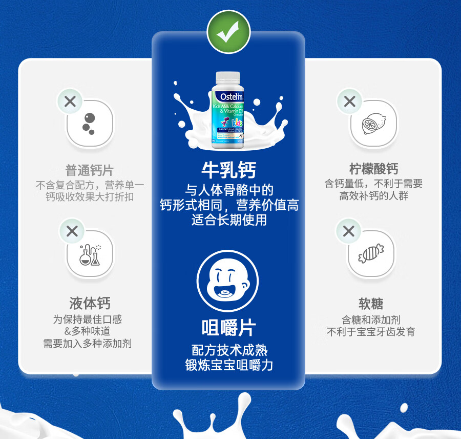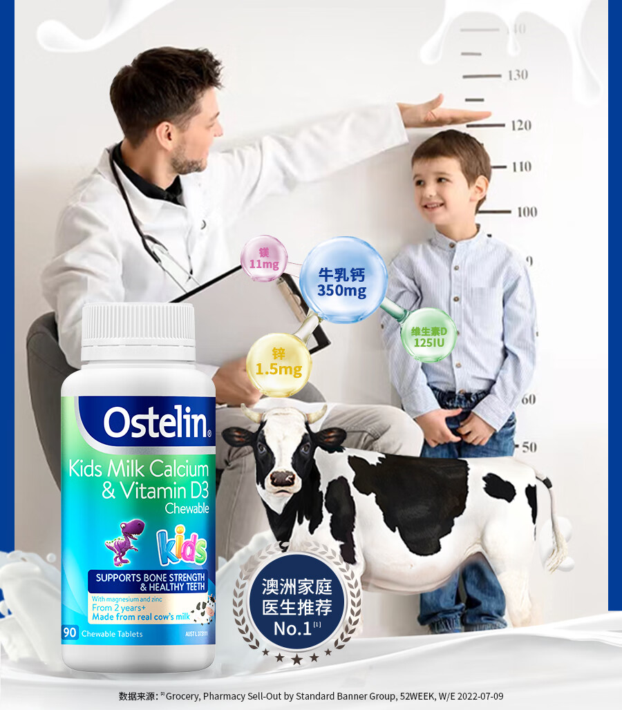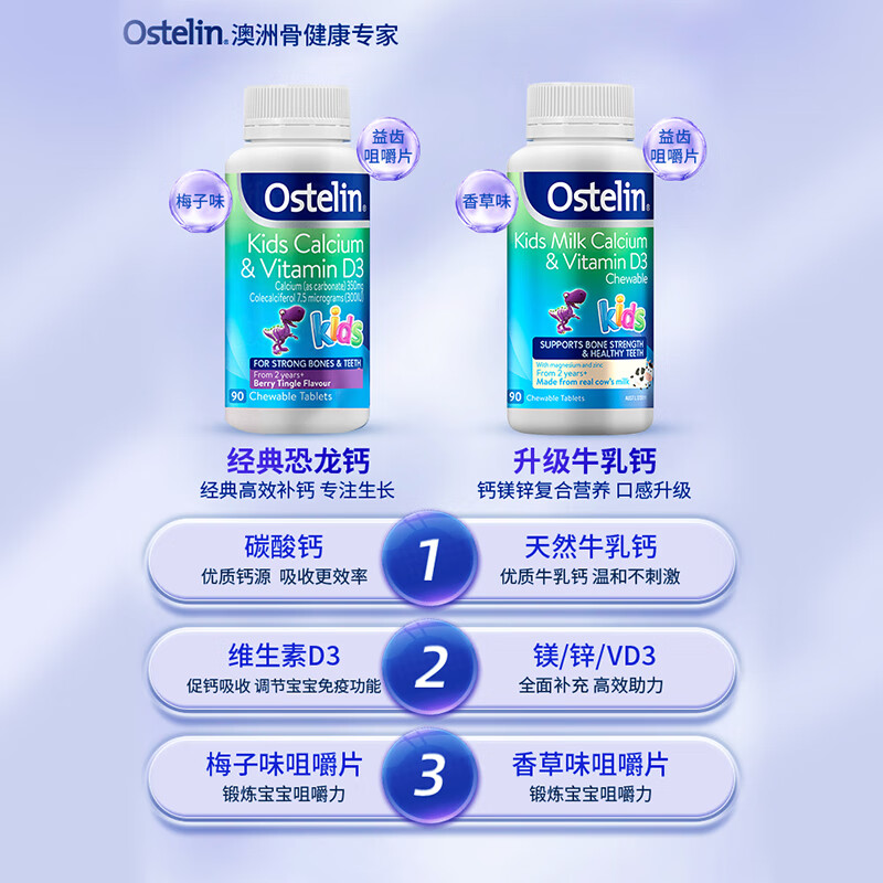 Ostelin奥斯特林儿童钙镁锌牛乳钙咀嚼片90粒
