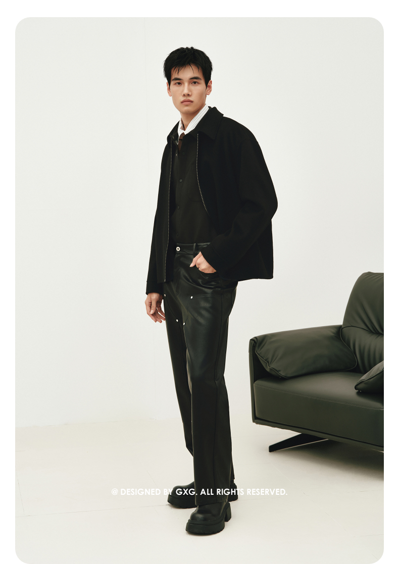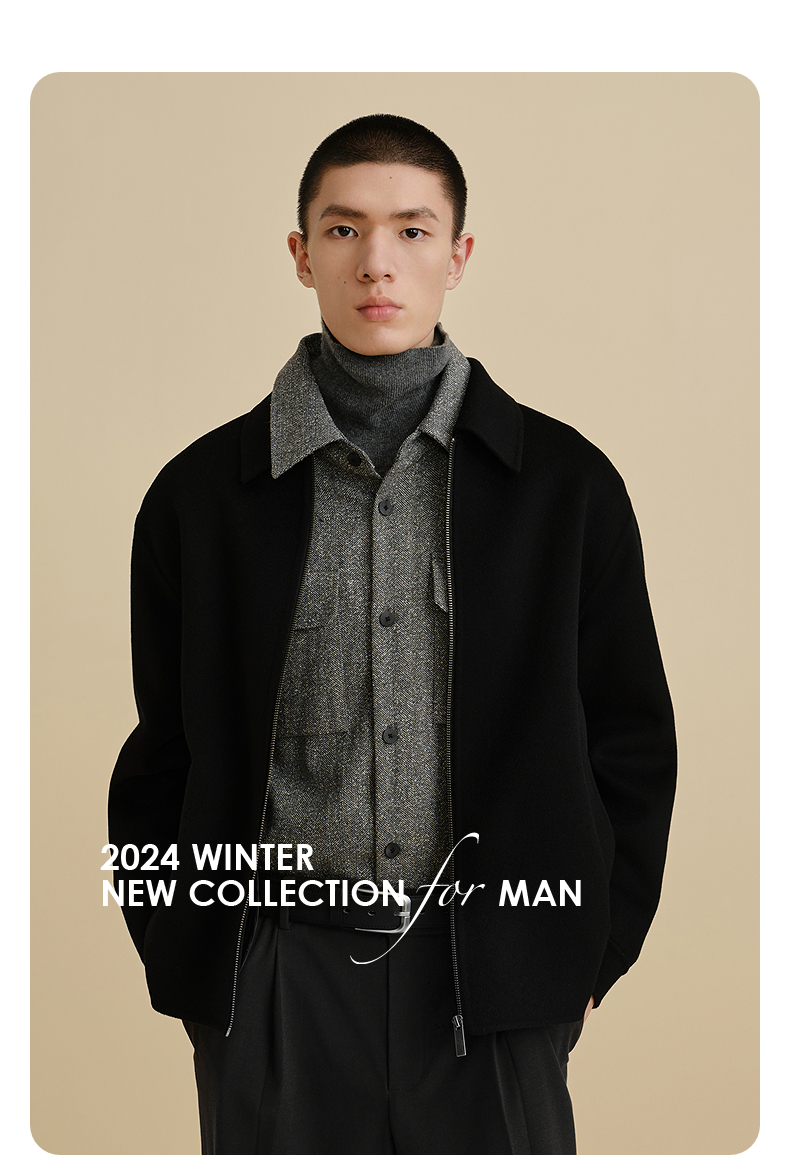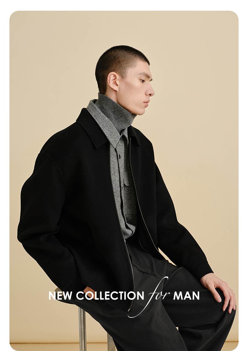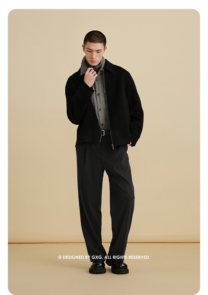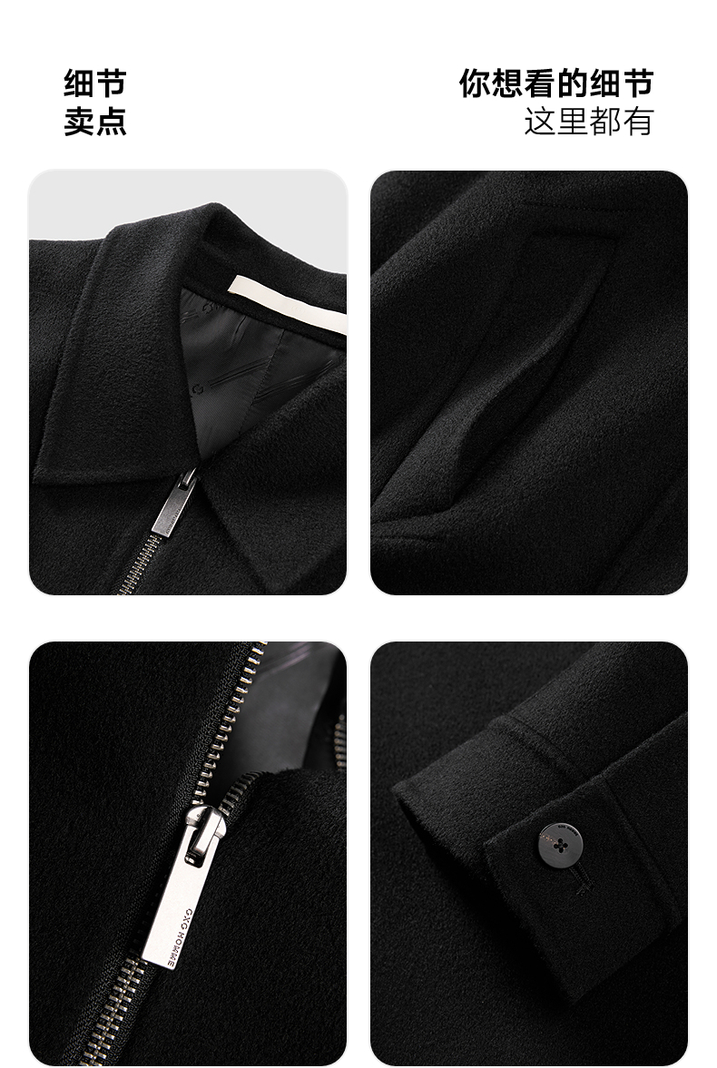 GXG男装 黑色含山羊绒通勤短款大衣 24冬热卖G24X064009