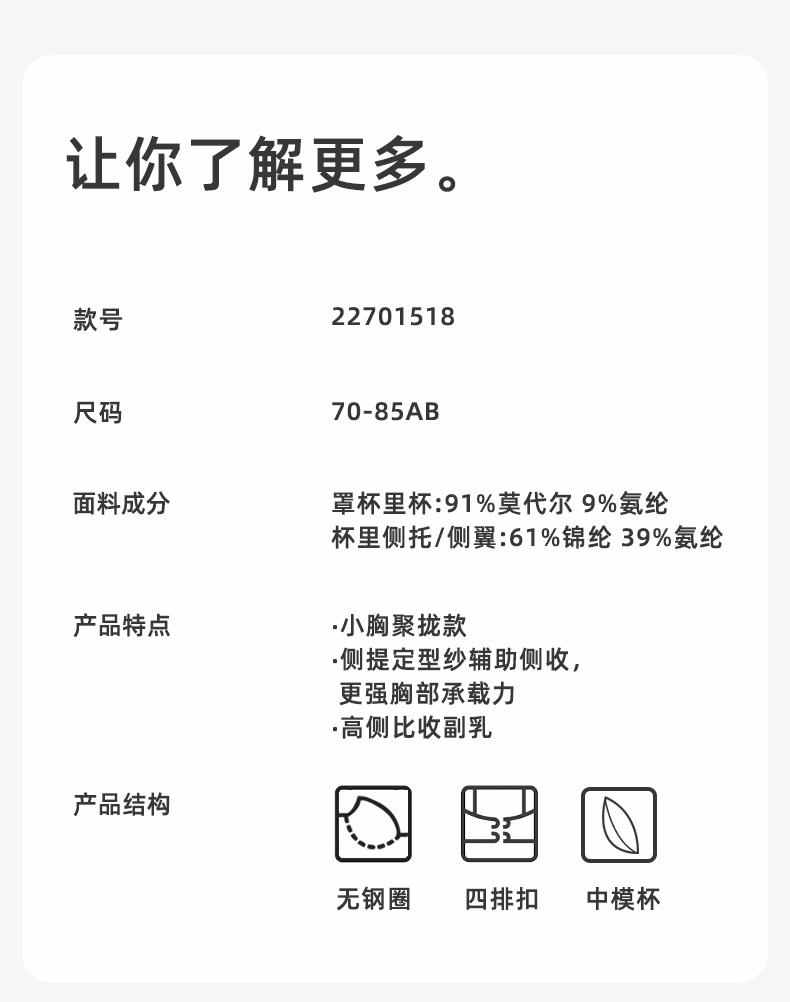 【商场同款】熳洁儿 清颜系列小胸聚拢进口乳胶杯透气中厚款蕾丝文胸22701518