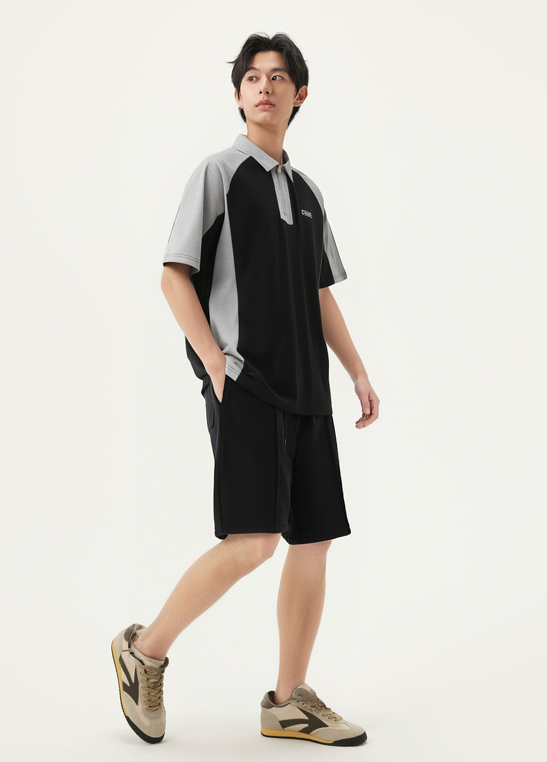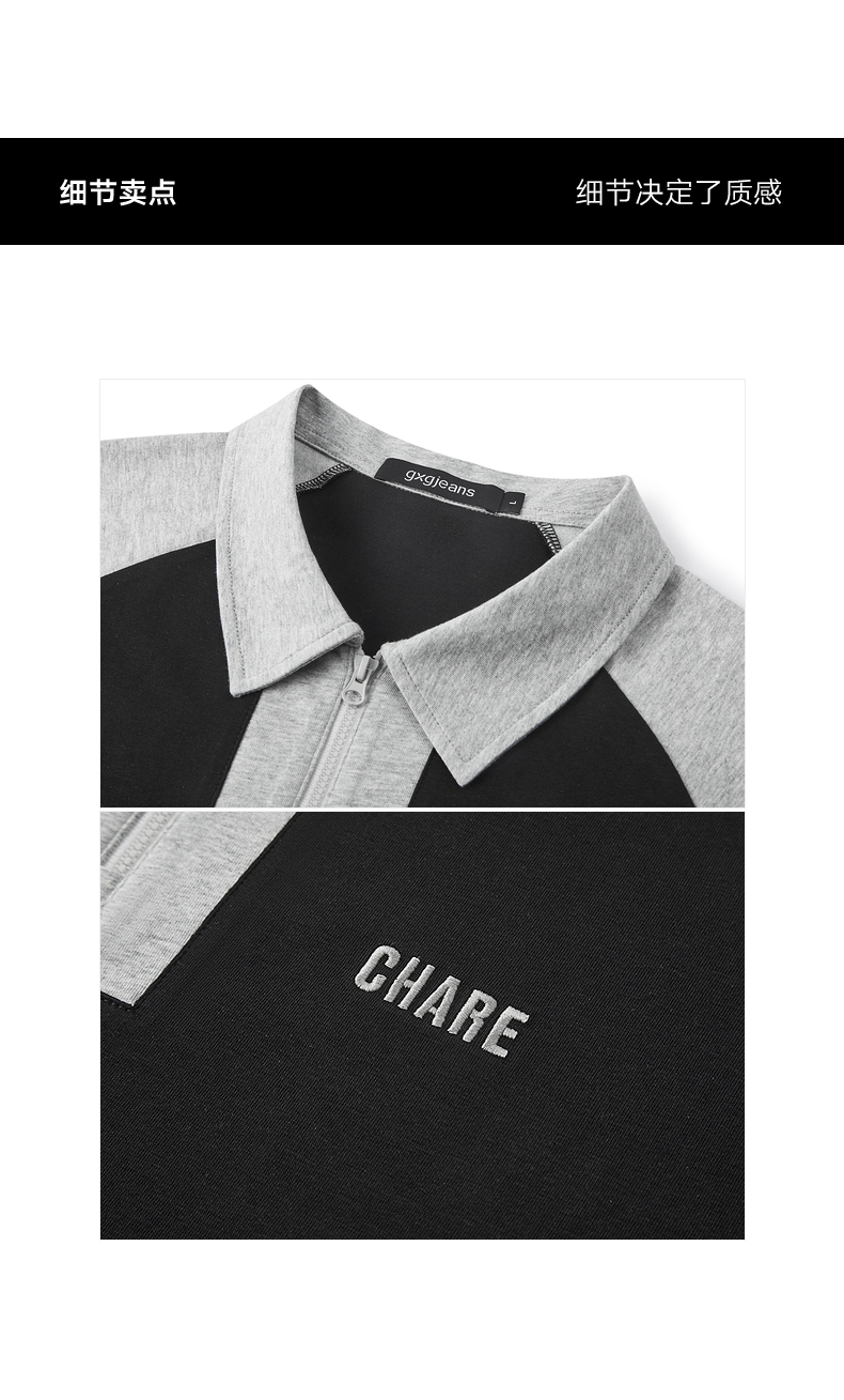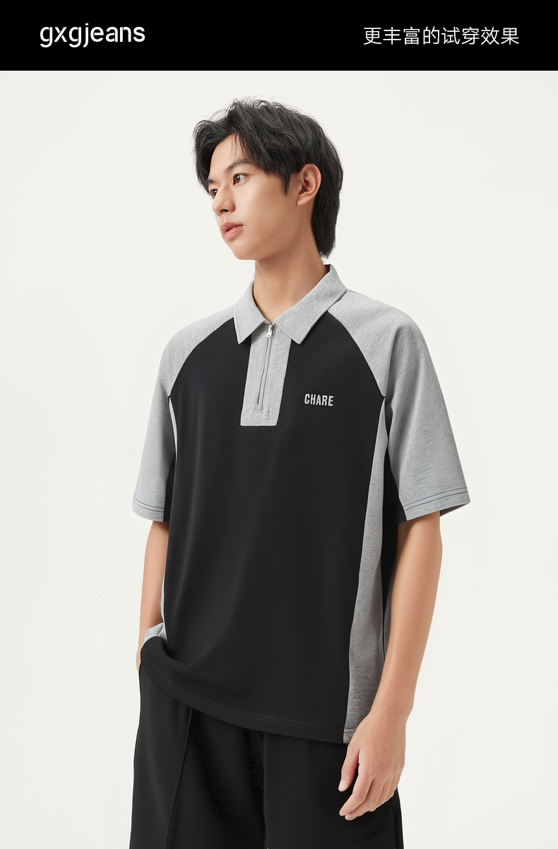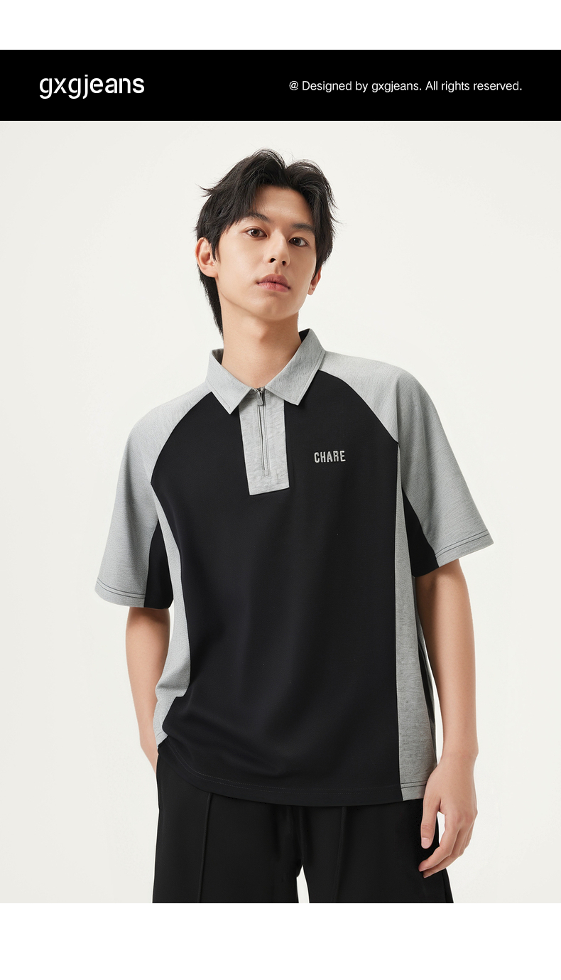 gxg.jeans男装 撞色拼接时尚宽松半拉链翻领短袖POLO衫25夏热卖