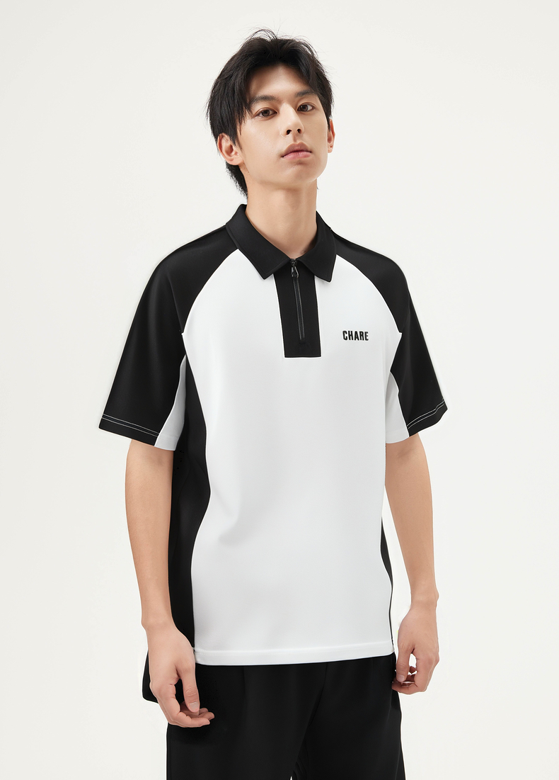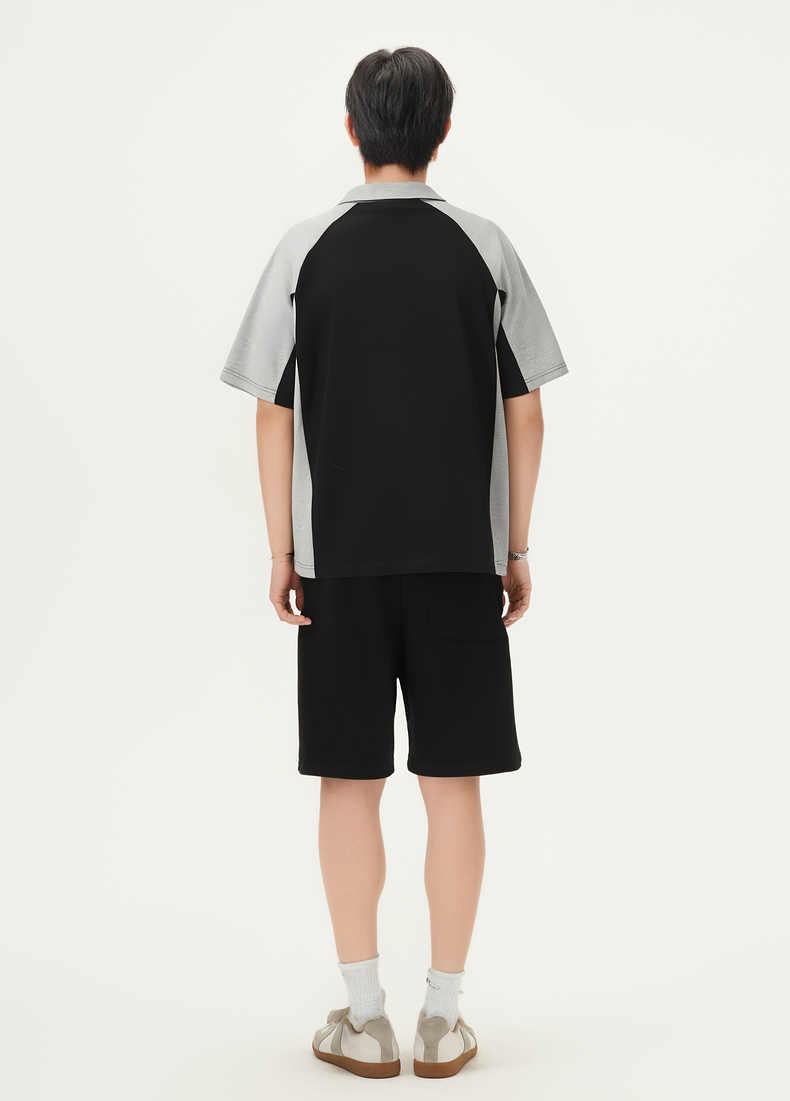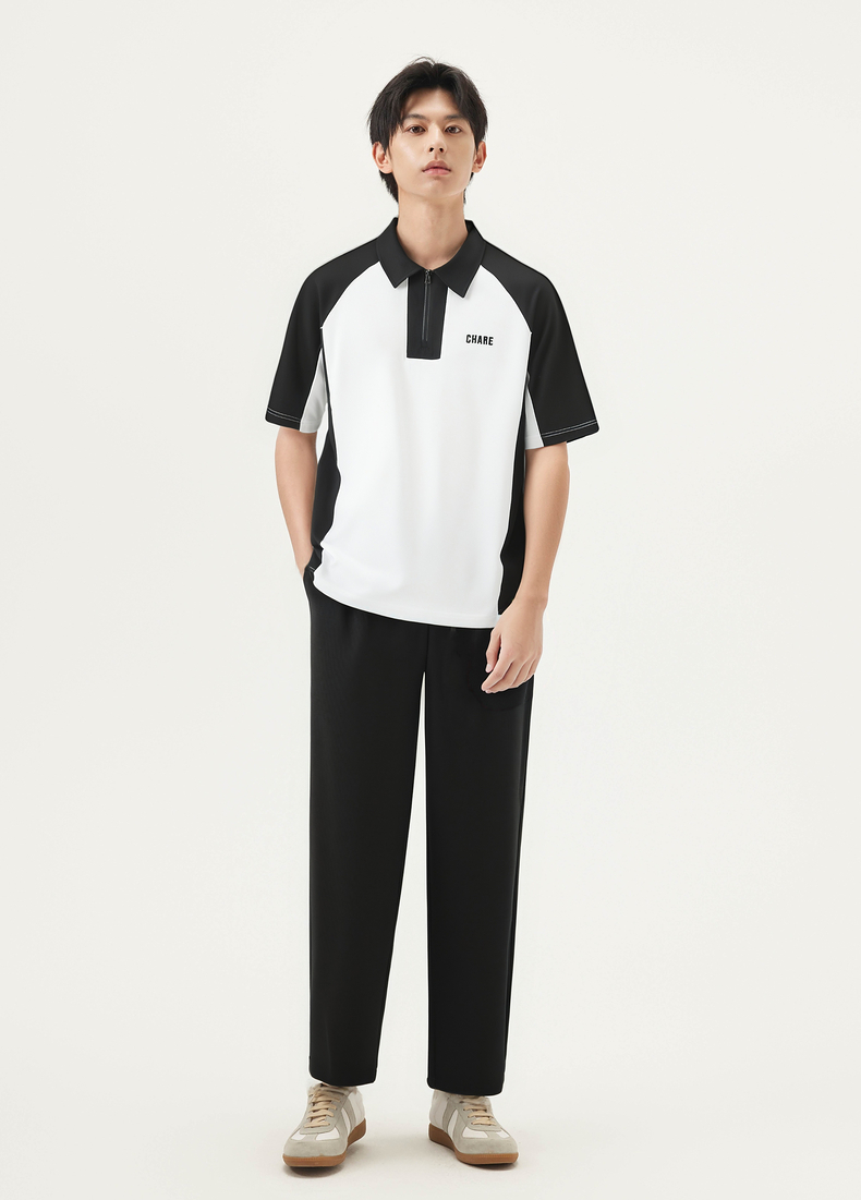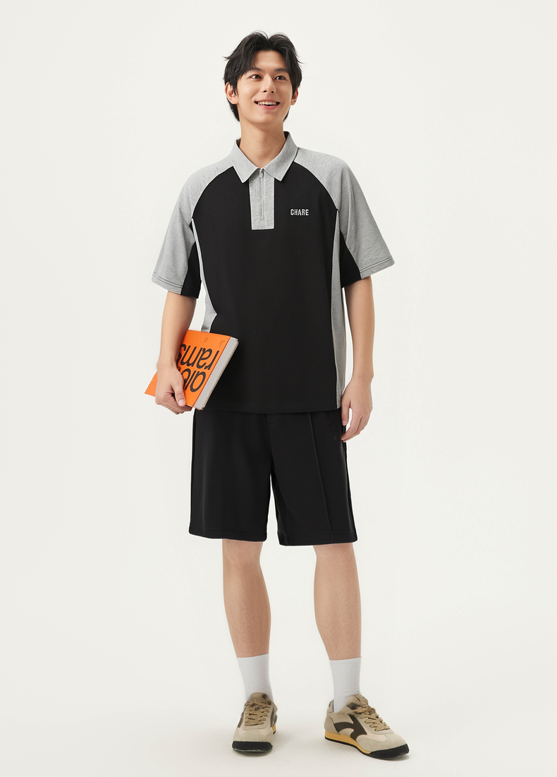 gxg.jeans男装 撞色拼接时尚宽松半拉链翻领短袖POLO衫25夏热卖