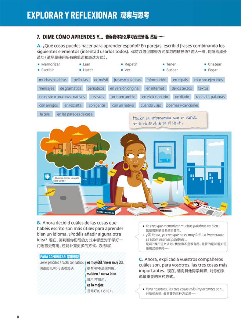 √ 结构清晰:每单元分为听读理解、观察与思考、要点小结、练习与交流和走遍西语世界四大板块,严格遵从语言学习的逻辑顺序;