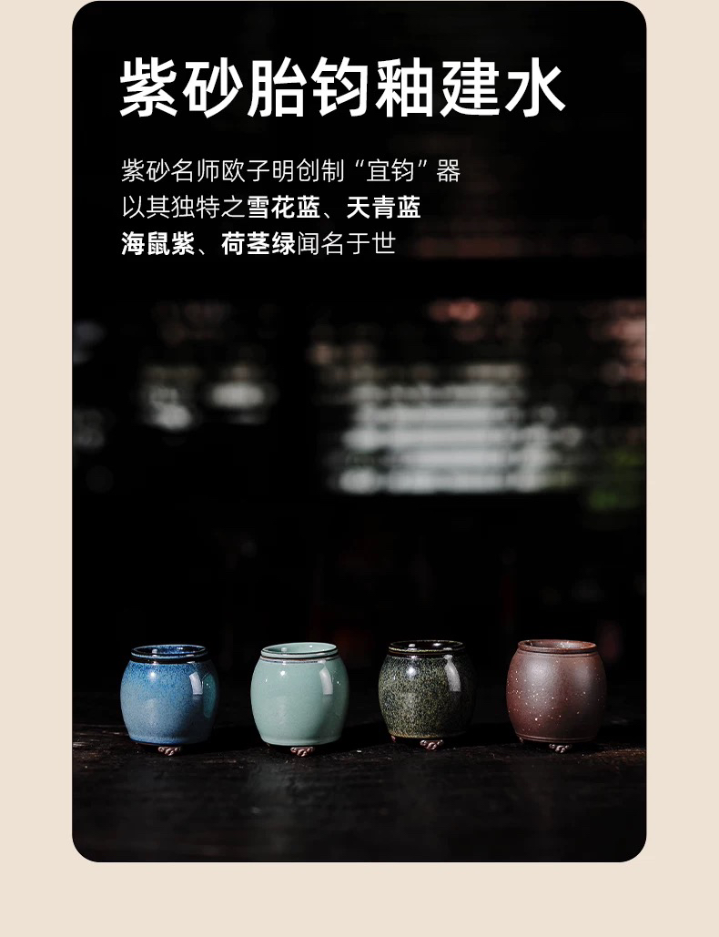 学古|紫砂建水 秋桂/蓝雪/海鼠/荷茎绿宜兴紫砂胎炉钧釉小渣斗