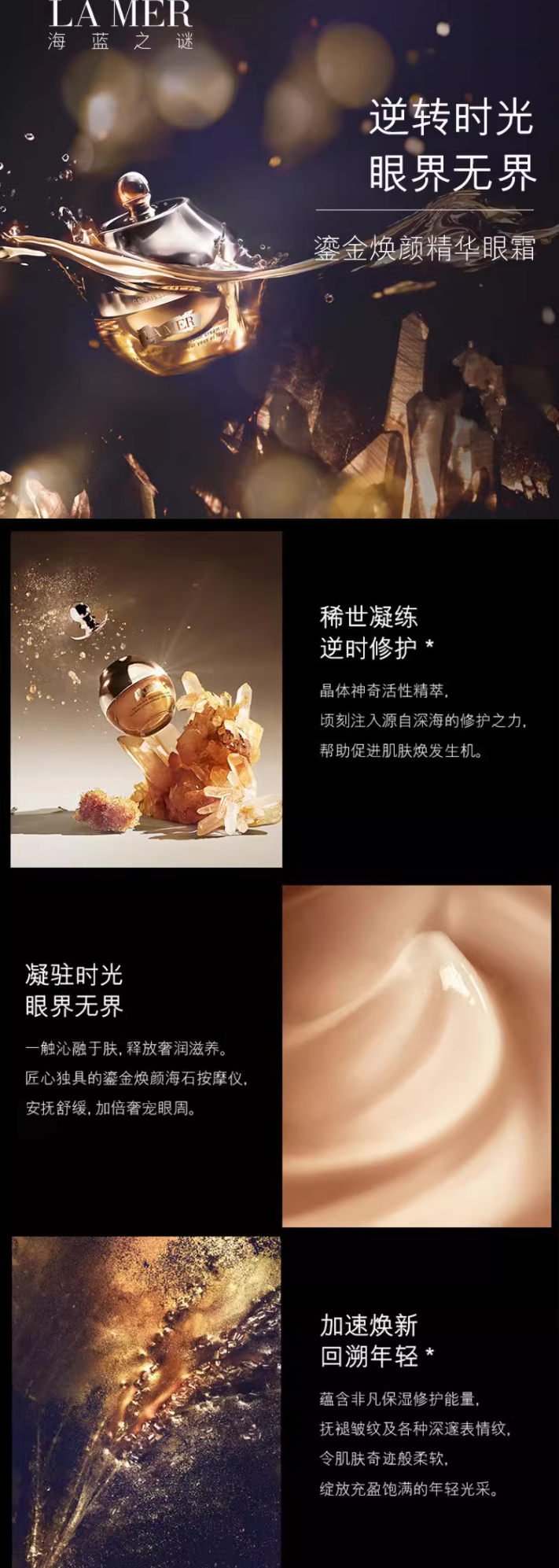海蓝之谜鎏金眼霜 贵妇滋润修护淡化细纹【大牌小样】
