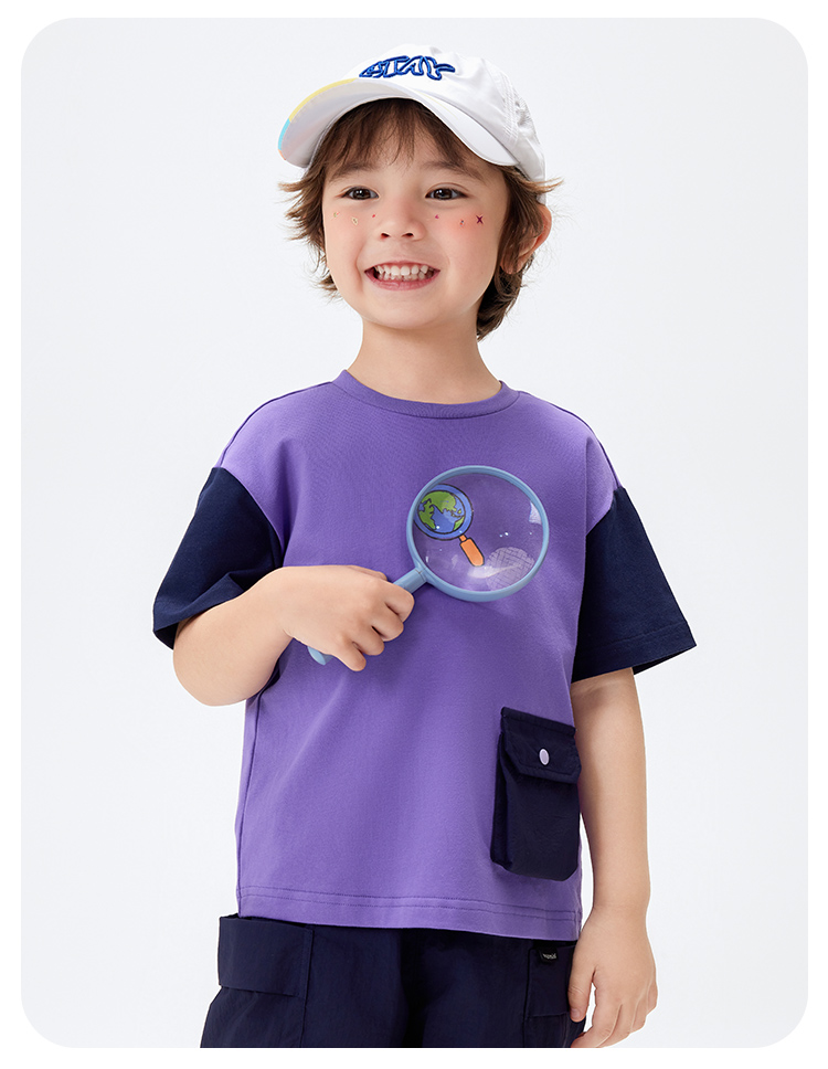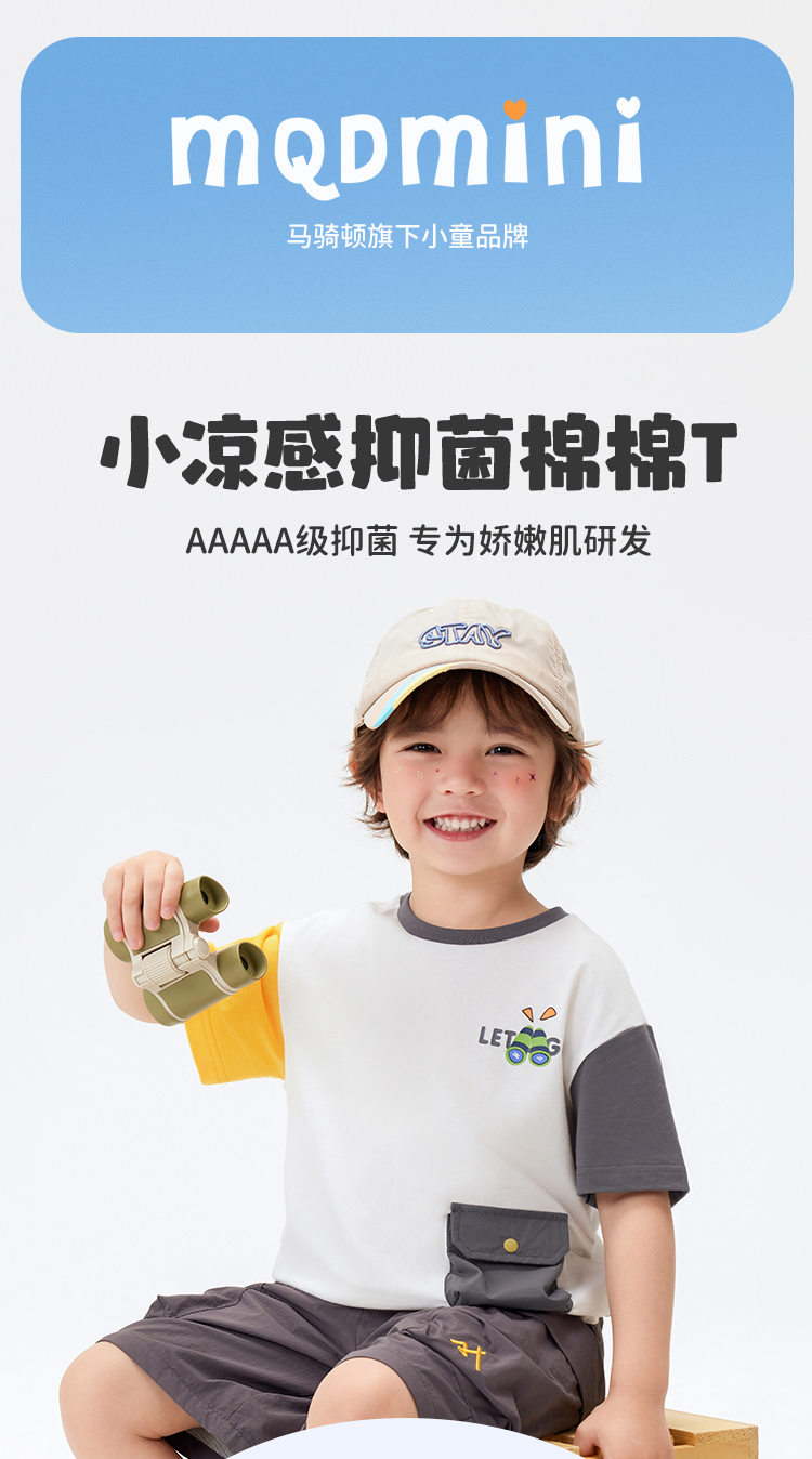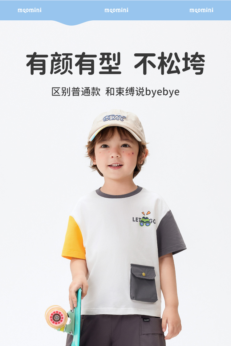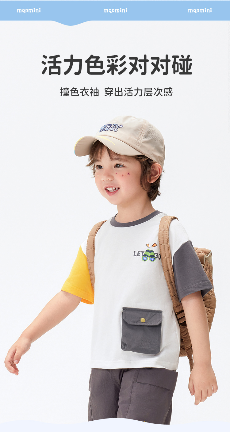 【5A抑菌+凉感不闷汗】【90-140】【MQDmini】男童夏季短袖t恤儿童圆领口袋撞色上衣