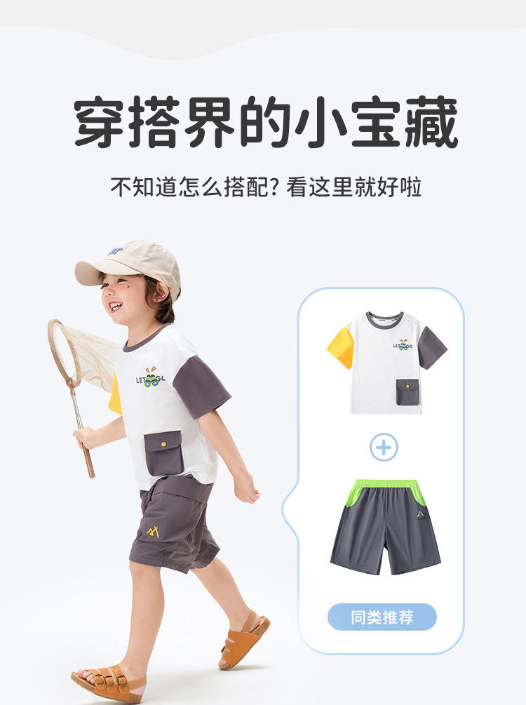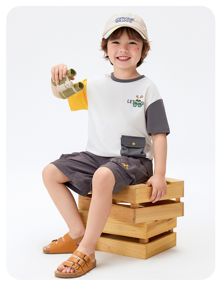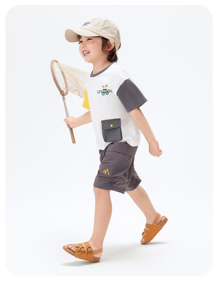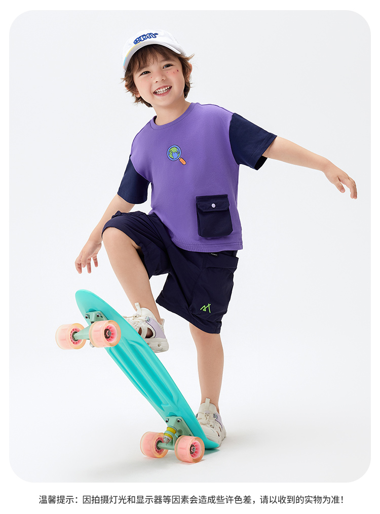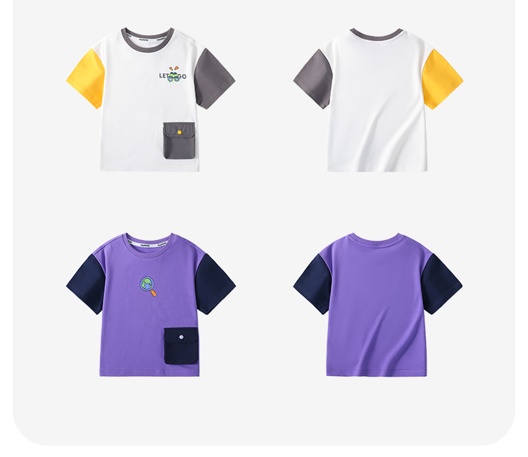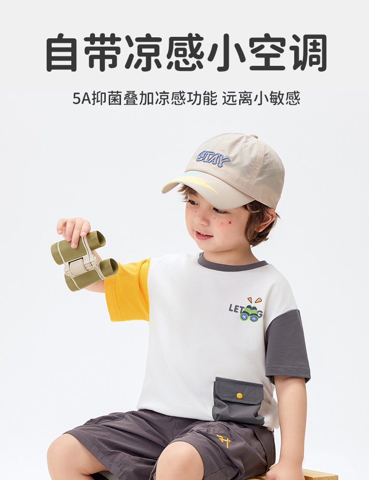【5A抑菌+凉感不闷汗】【90-140】【MQDmini】男童夏季短袖t恤儿童圆领口袋撞色上衣