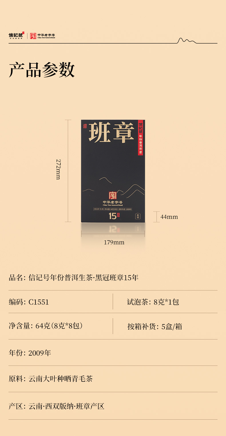 八马信记号 | 信记号年份普洱生茶·黑冠班章15年 C1551