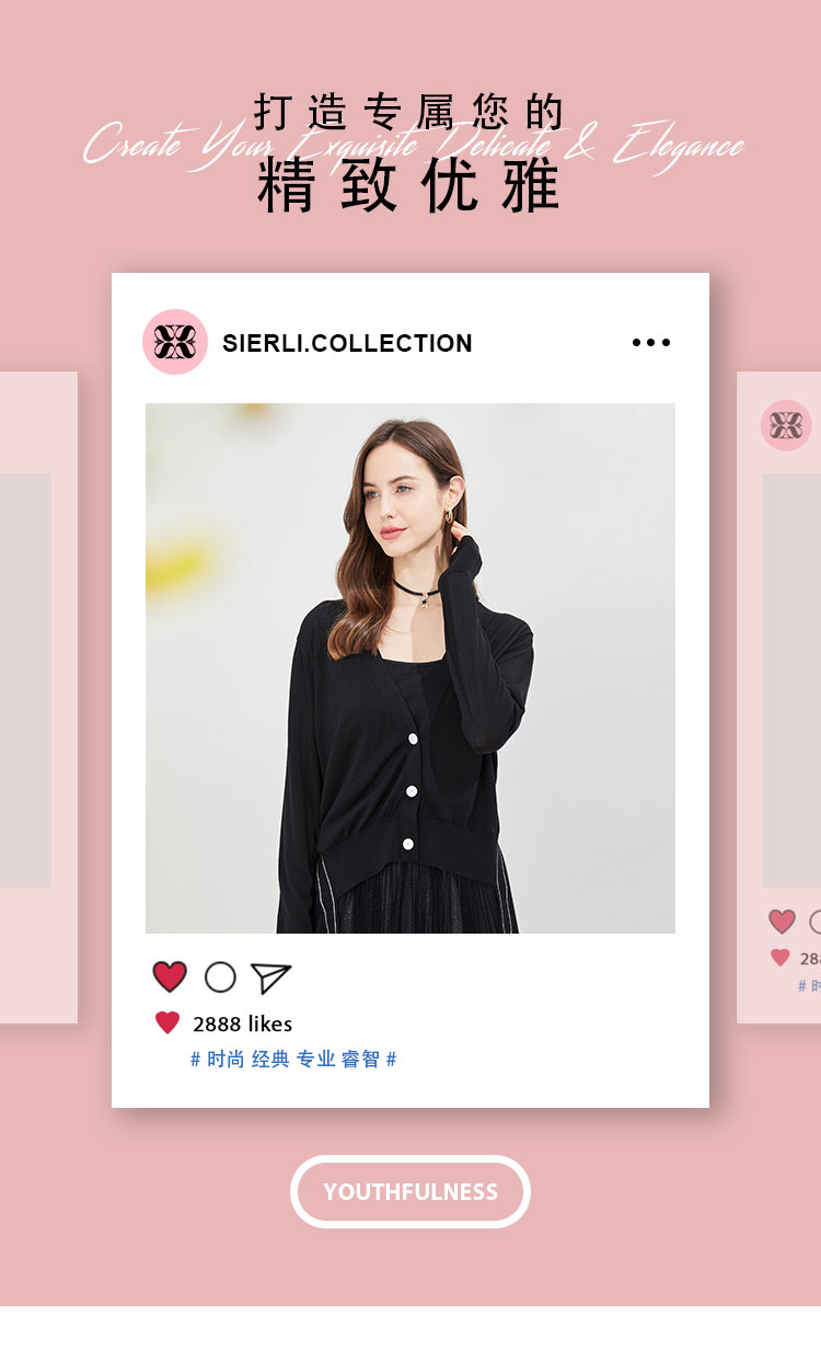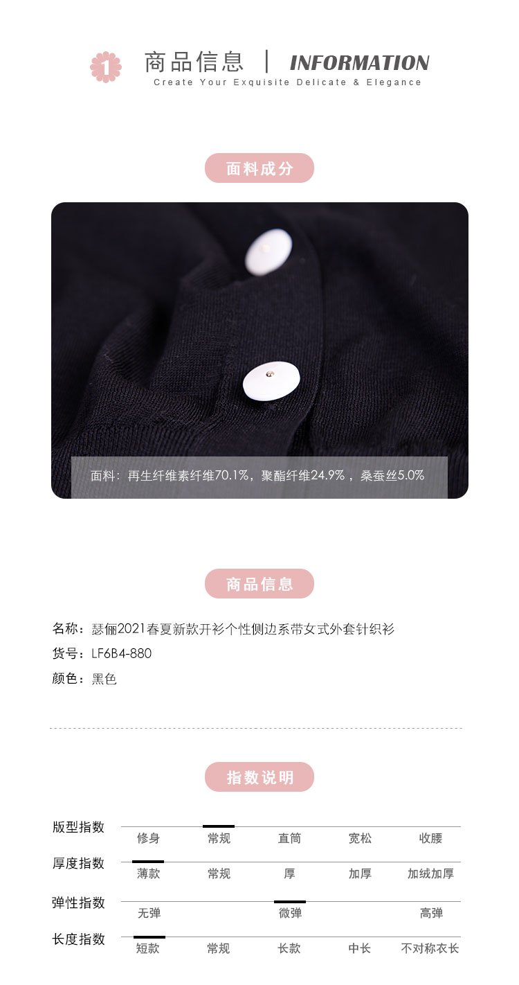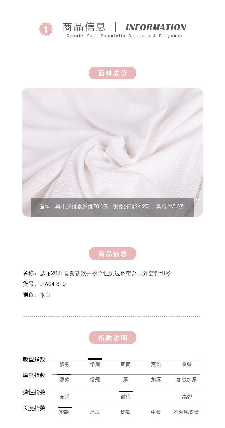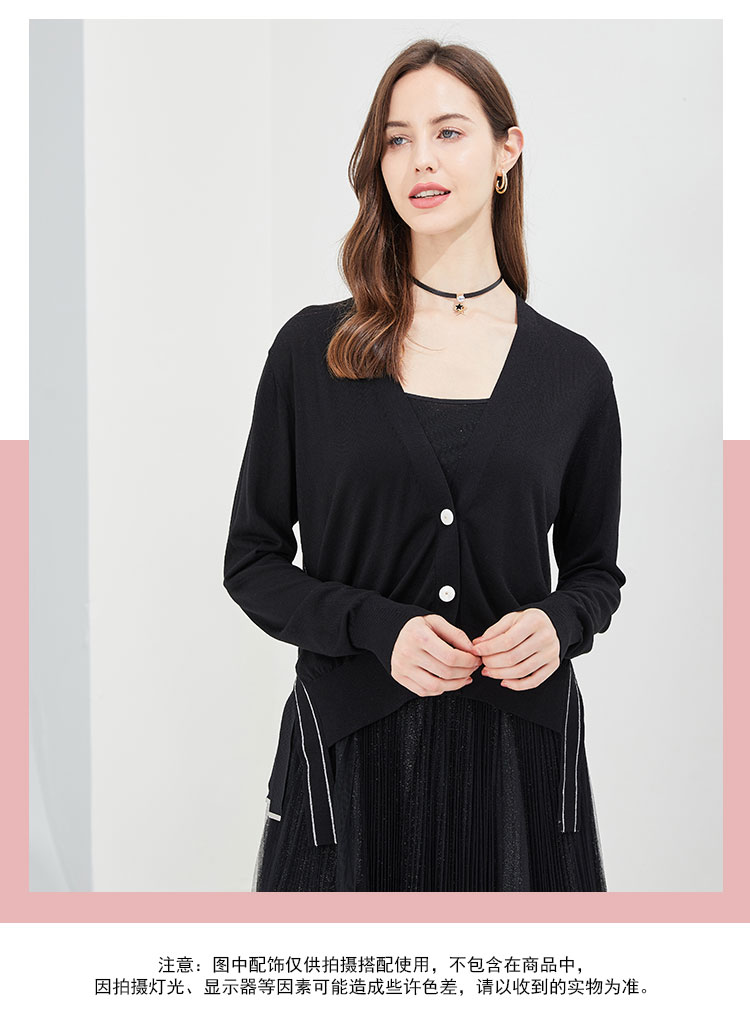 RF6A4斯尔丽瑟俪2021年春季上新开衫个性侧边系带女士外套针织衫
