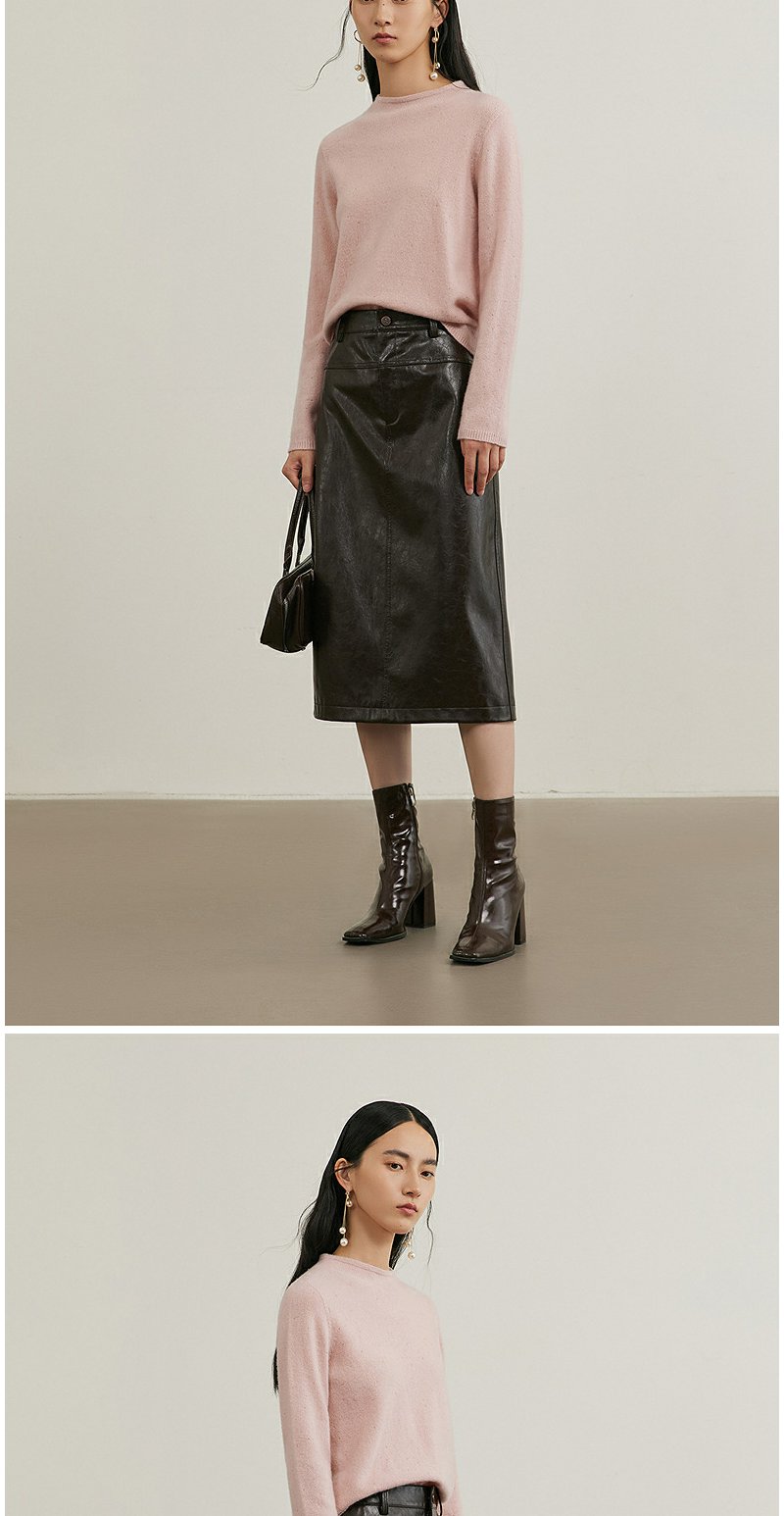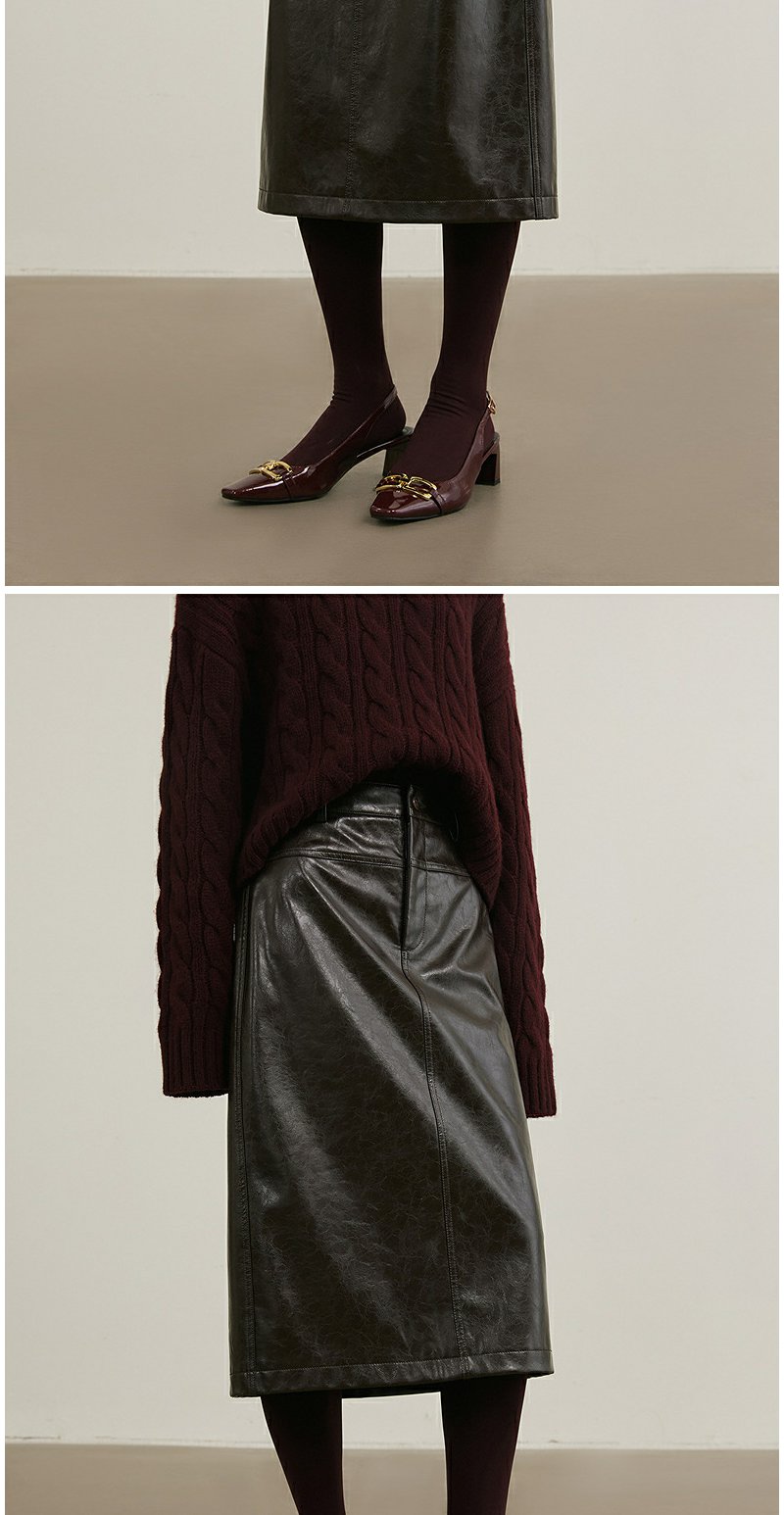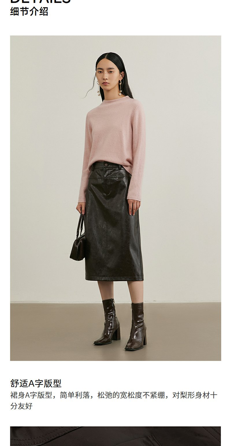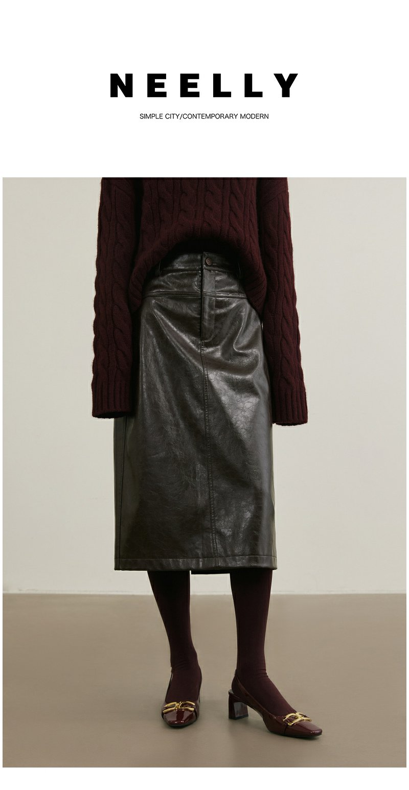 NEELLY纳俪商场同款冬季新款复古PU皮裙女高腰显瘦直筒半身裙N25114E04561
