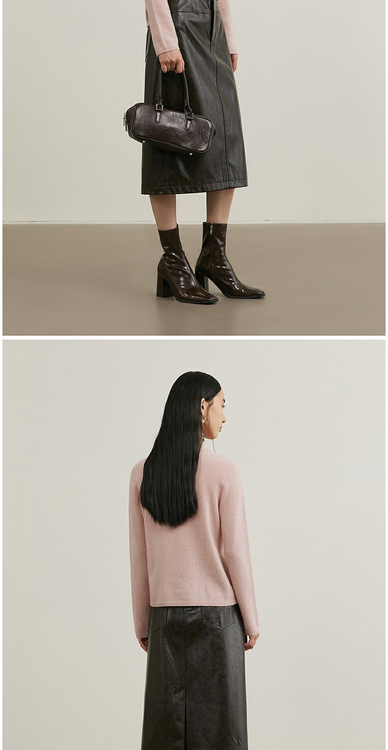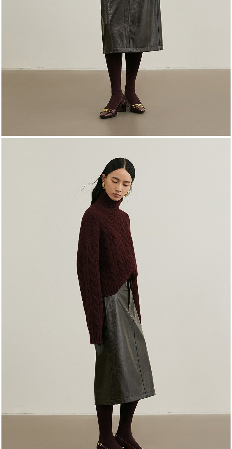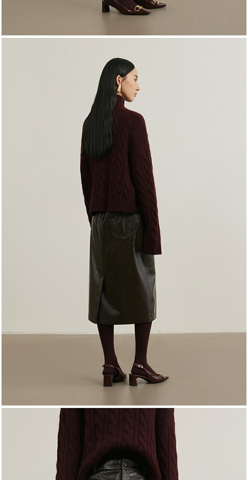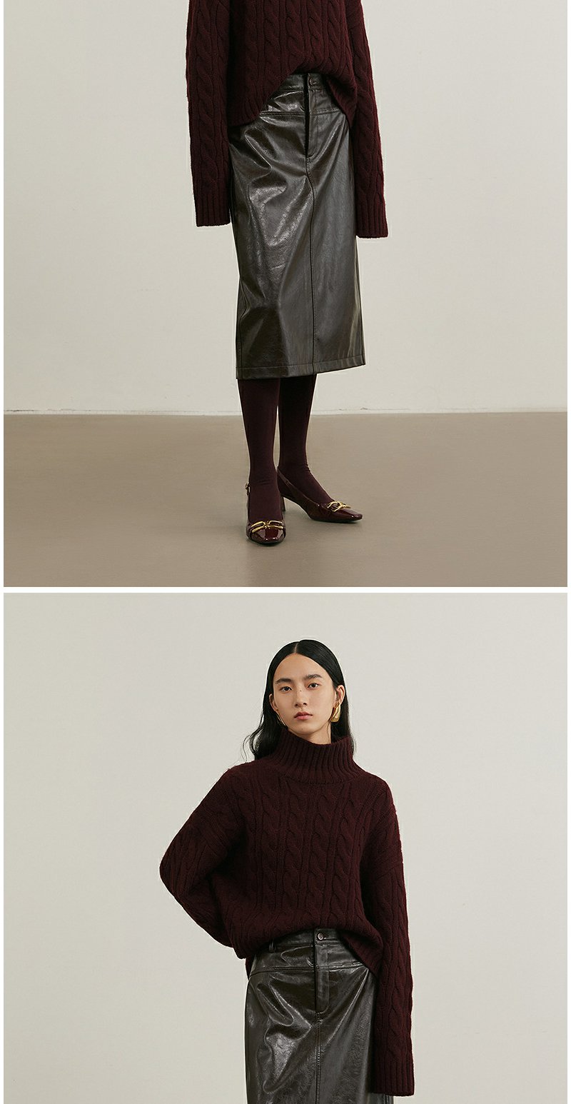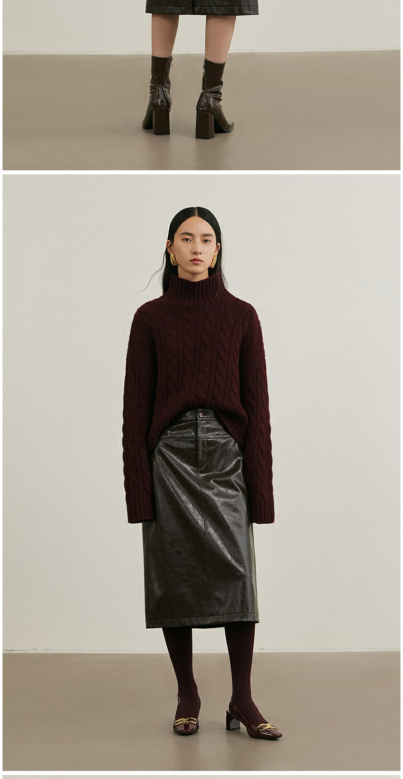 NEELLY纳俪商场同款冬季新款复古PU皮裙女高腰显瘦直筒半身裙N25114E04561
