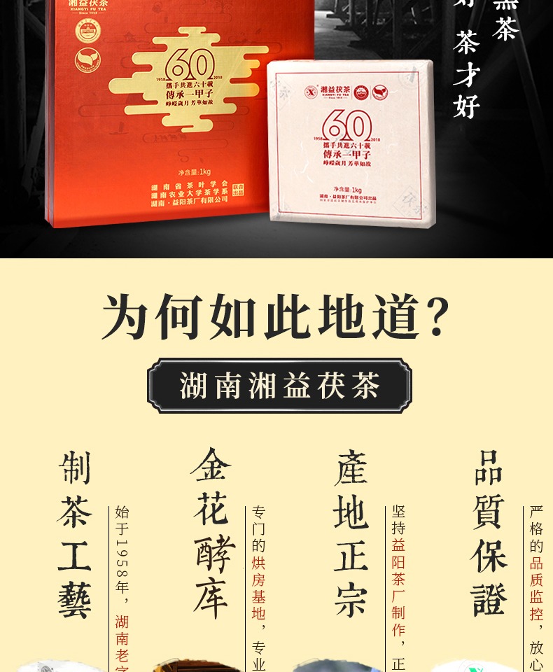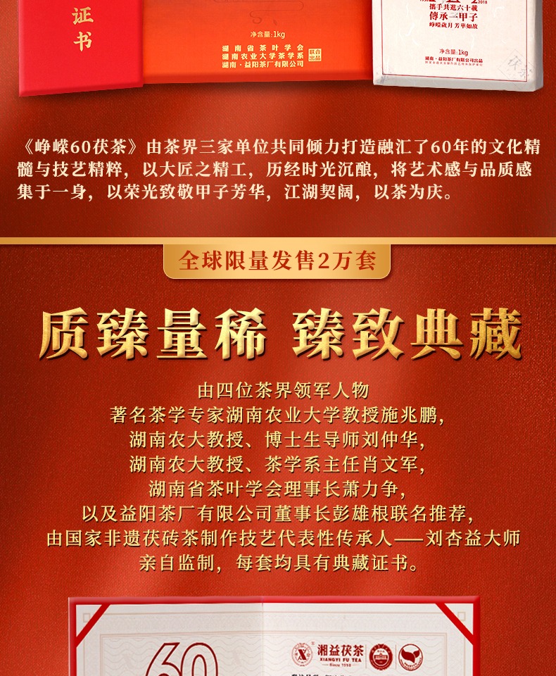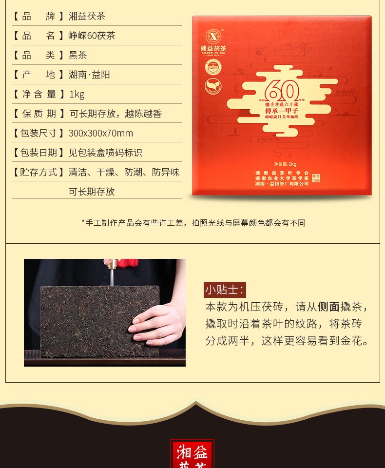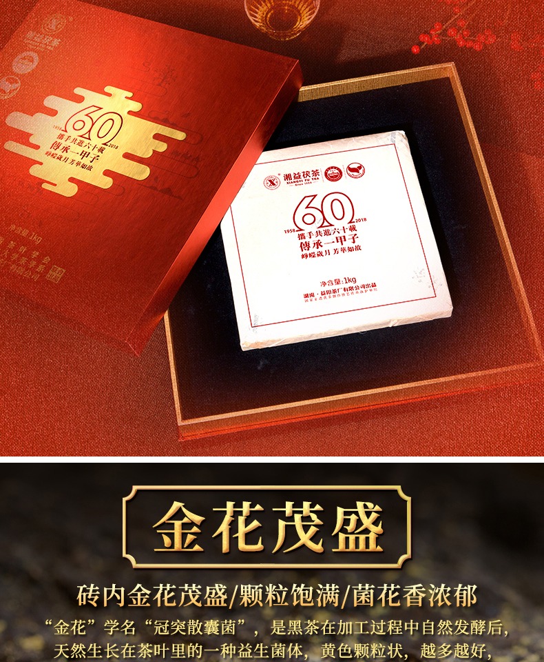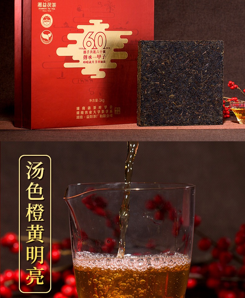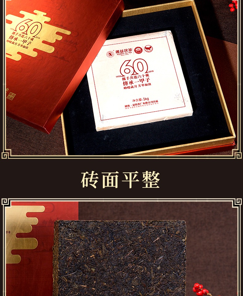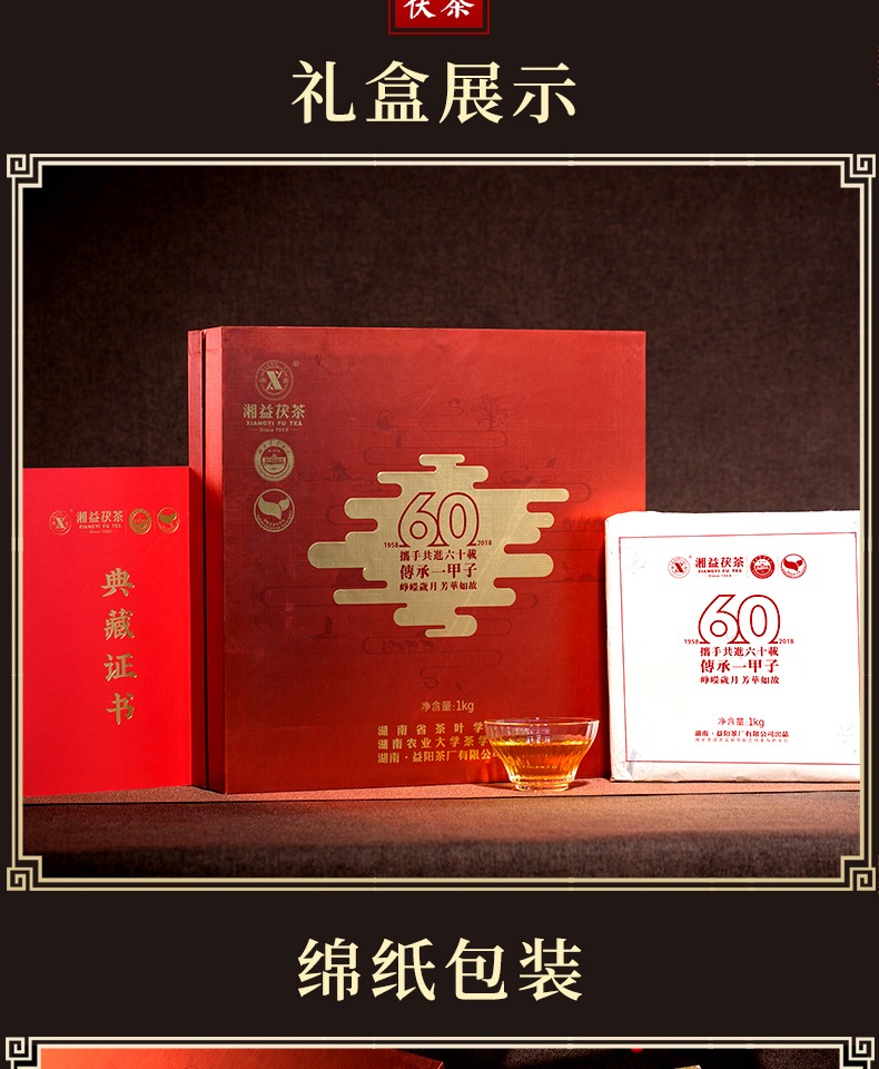 黑茶丨湘益茯茶 正宗纪念茶 峥嵘60礼盒 1kg