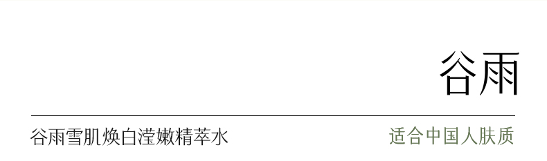 - 谷雨,更适合中国人肤质的植萃美白。专研中华珍稀美白植萃光甘草定,深入研究中国人肤质特点,打造中国女性独有的仙气白。