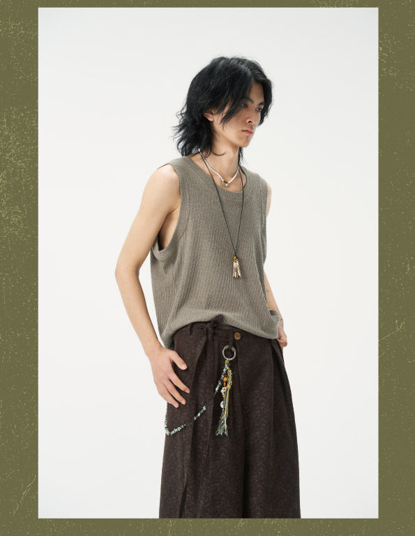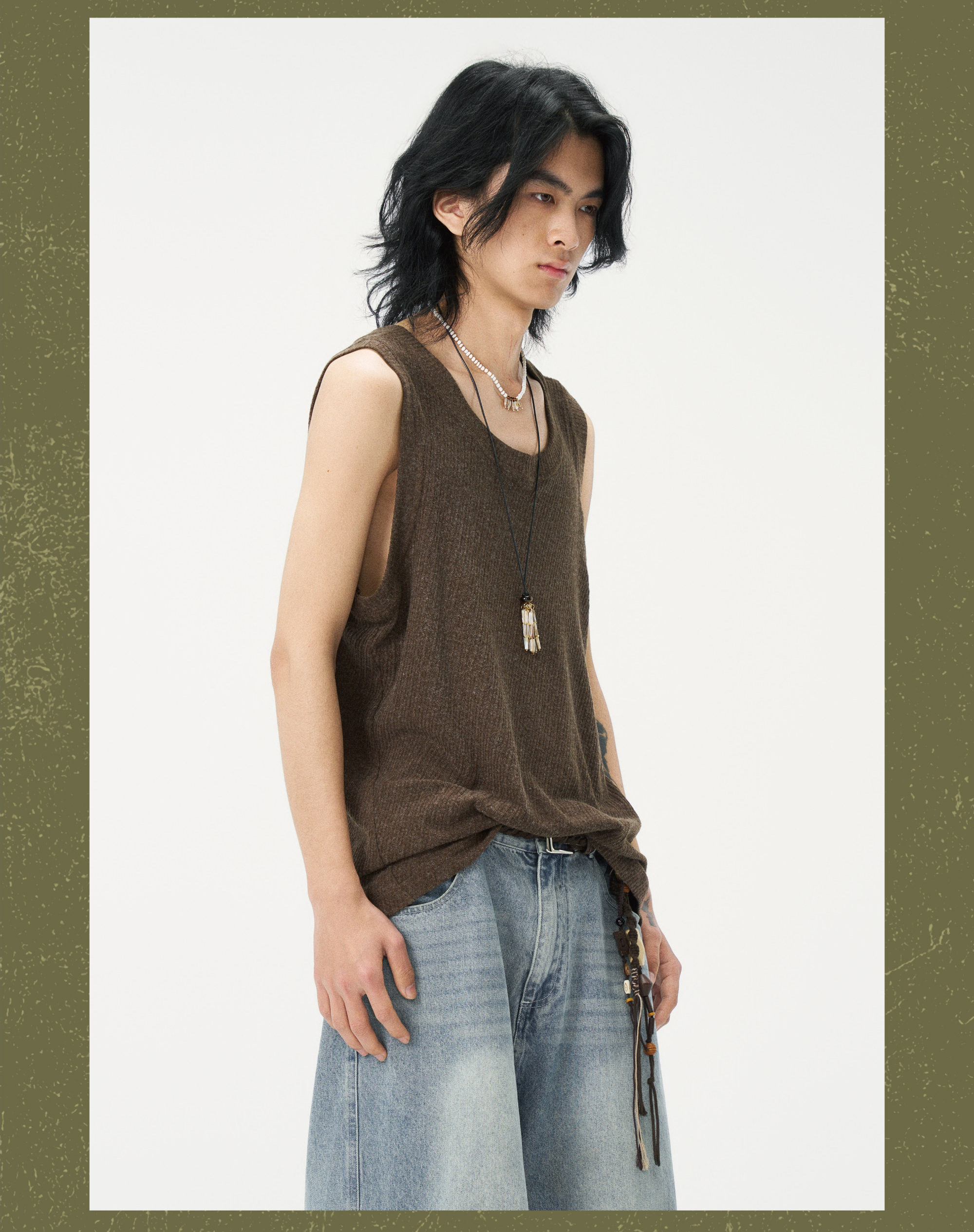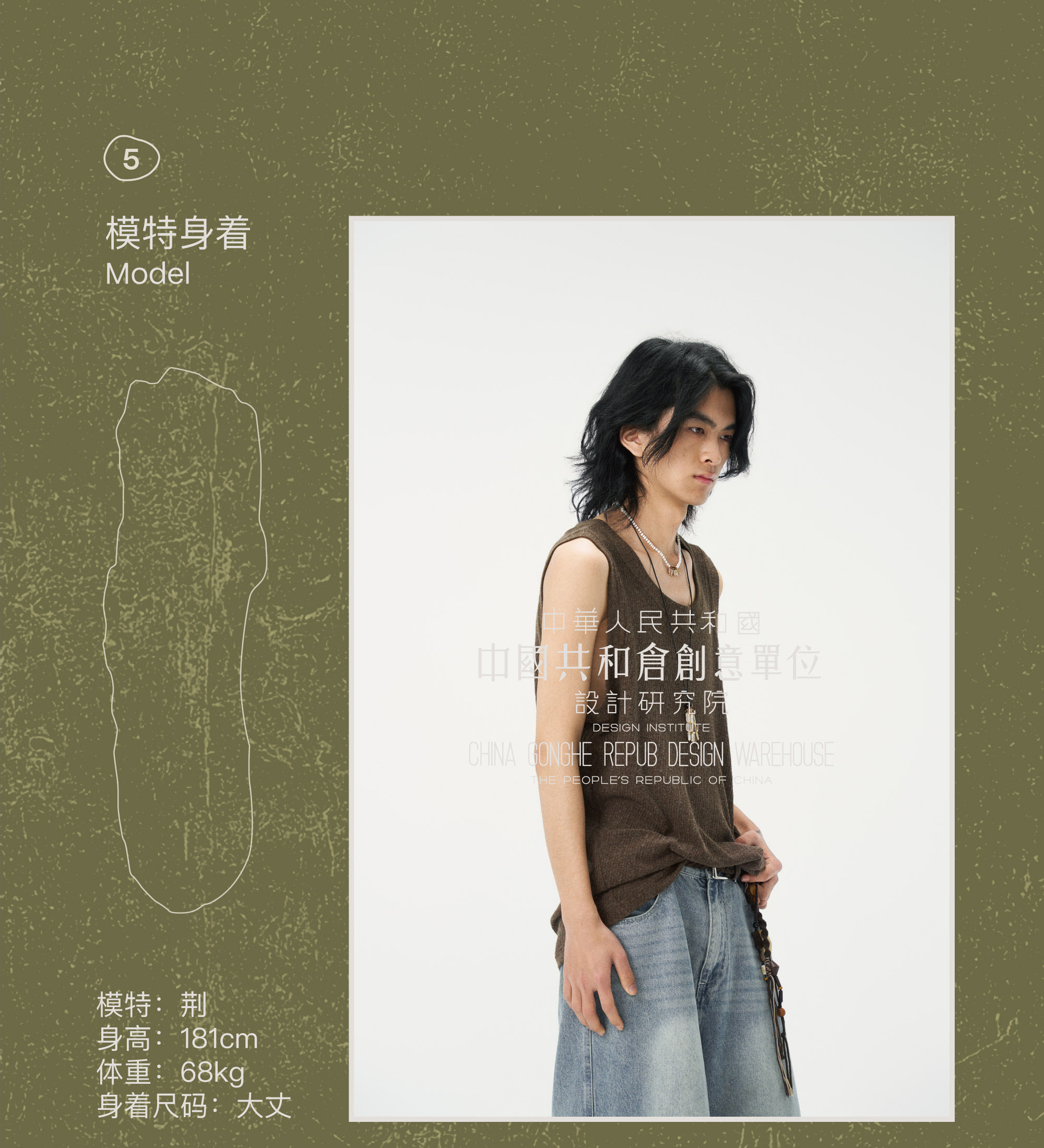 共和GongheRepub/GH24057/「朔」斜裁坑条肌理感 花纱无袖透气垂坠坎肩背心