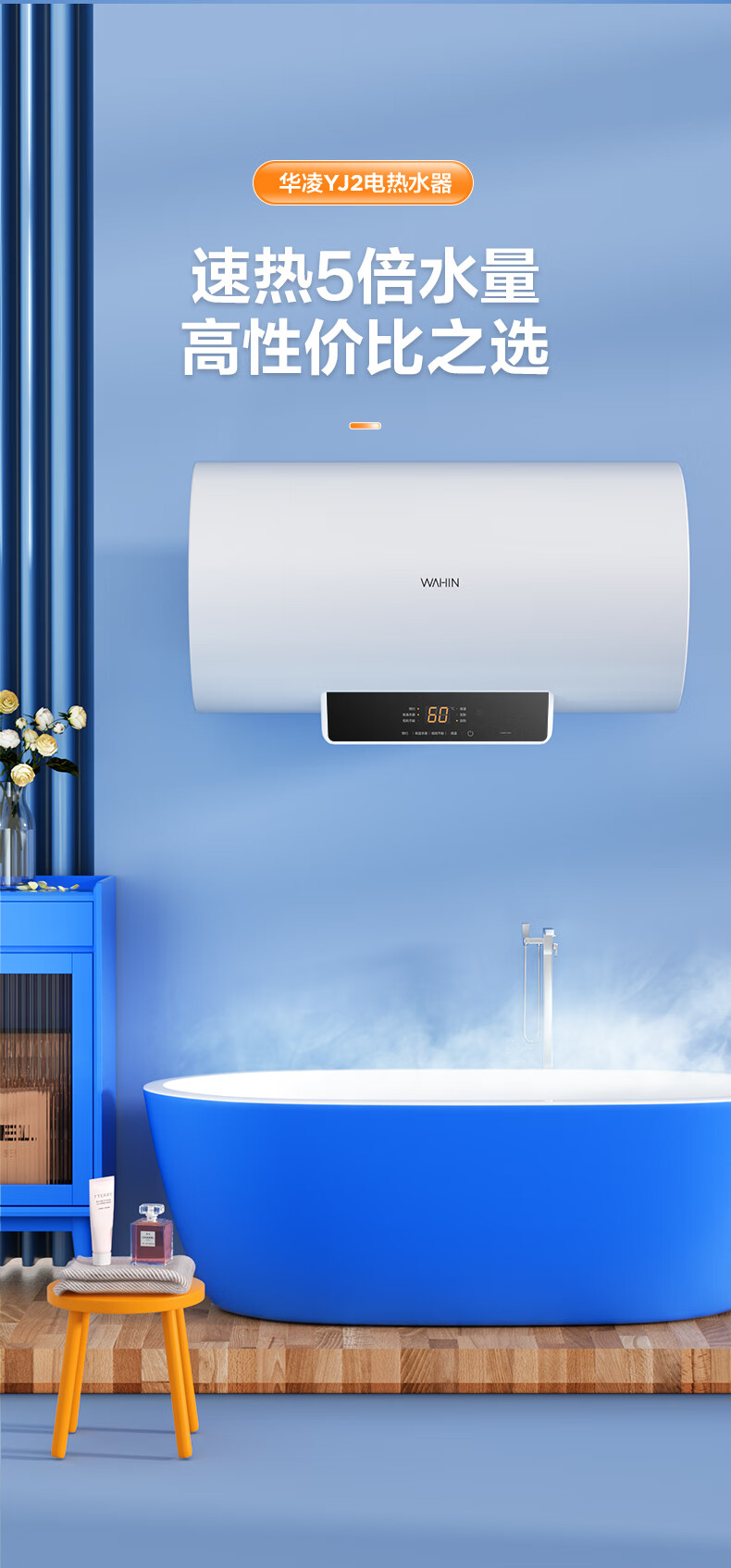 美的(Midea)出品储水式电热水器大功率速热2200W智能家用 经济安全升级防电墙快速热水器YJ2上门安装 华凌F5021-YJ2【50升2-3人使用】 性价比优选